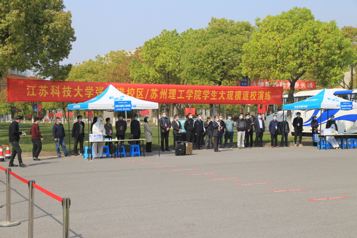 当天, 开学疫情防控演练在镇江东西南三个校区和张家港校区同步展开,校党委书记葛世伦、校长周南平、副书记副校长景旭文分别开启镇江各校区演练帷幕,党委副书记许俊华、副校长王加友和姜朋明主持演练开场仪式。校领导汤建、俞孟蕻、郑培钢、谈镇、嵇春艳,校党委常委李恒川、周春燕、刘新波,相关职能部门以及各学院领导观摩演练,镇江市和张家港市疾控、公安、外事、社区等有关人员现场指导。
