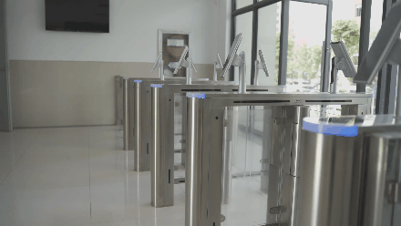 在新校区53号学生宿舍组团,一进门就是宿舍的人脸识别门禁系统,目前正在采集图像信息,通过红外线感应就能进出,后勤集团员工和工人师傅正在进行最后的安装调试和清洁整理,走廊两侧也摆上了绿植。