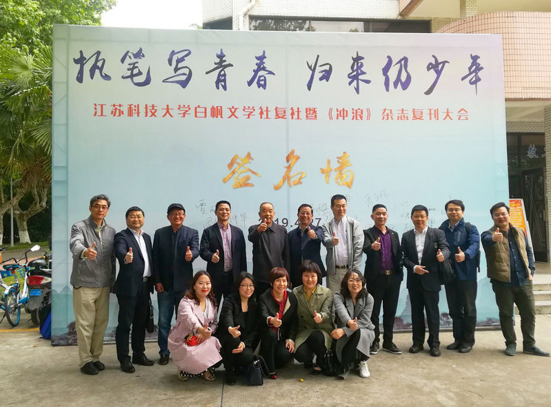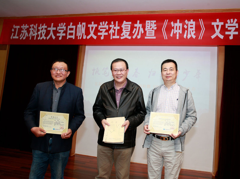 那时以理工科为主的院校很少有文学社。1984年,我和几位热爱文学的同学,在当时的团委书记李银老师和学生会主席龙立同学的支持下,找到时任学生处处长沈贻森老师和校党委副书记祝山老师,请求成立校文学社。他们开始有些顾虑,没有马上批复同意。因为白天要上课,我就晚上去领导们的家里做工作,承诺每期出版前所有文章都请宣传部和团委领导审查,领导签字同意了我们再刻蜡纸和油印,这才打消了领导们的顾虑,“船院文学社”终于在1984年金秋十月诞生了,时任校长肖流同志还亲自为文学社期刊白帆杂志题词。知道了我前面简述的时代背景,大家才会知道当时领导们做这样的决定是承担了一定的政治风险的,所以在36年后的今天,我们应该再次向肖流校长、祝山书记、沈贻森书记和李银等老师致敬!因为他们的担当,我校第一个大学生社团成立了。