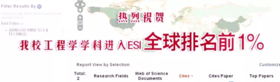 2018年,我校工程学率先进入ESI学科全球排名前1%,实现了零的突破;“十三五”期间,学校共有工程学、材料科学和化学3个学科进入ESI学科全球排名前1%;至“十三五”末,学校ESI总排名在中国大陆高校中居171位,其中工程学排名第106位,材料科学排名第81位,化学排名第150位。“ESI高被引论文数量”位列中国大陆高校排行榜103位,“ESI热点论文数量”位列83位。