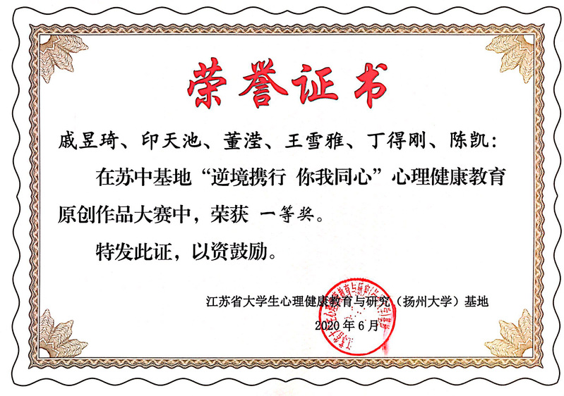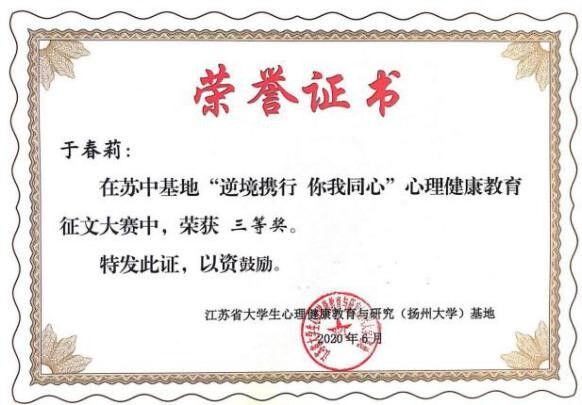 依托 “蚕桑减压小屋” ,打造Stress SAP Station(3S)特色心理教育平台,获江苏省 “逆境携行 你我同心”心理健康教育原创作品大赛一等奖和三等奖各1项。
