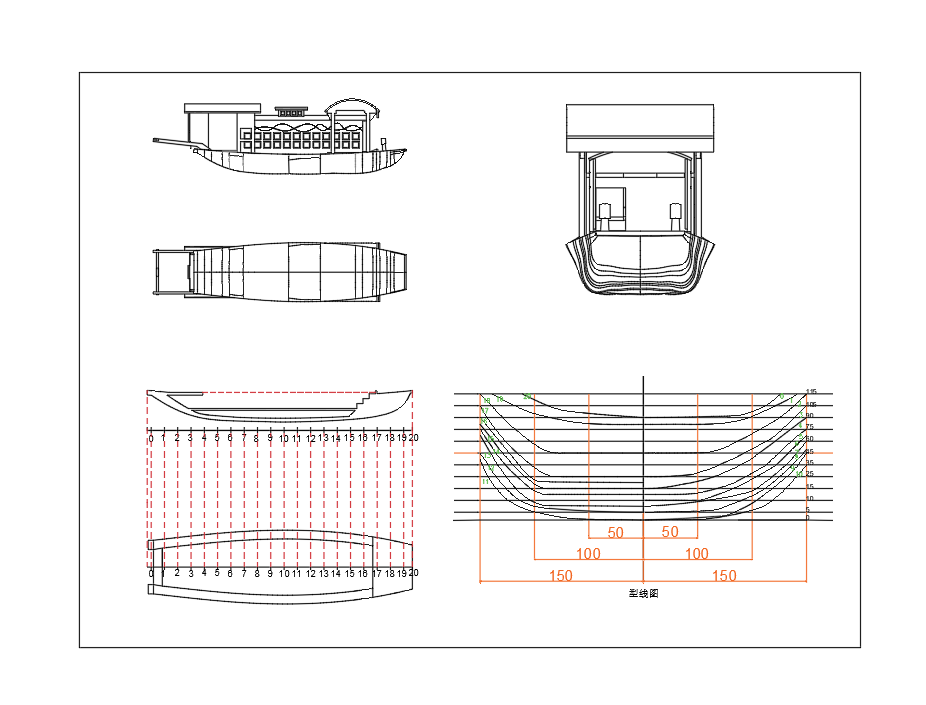 船舶专业同学基于三维点云图的数据资料,绘制出缩尺比后的红船图纸。机械设计专业同学基于红船图纸,采用三维建模方法建立红船船体模型、上层建筑模型、舾装件模型。