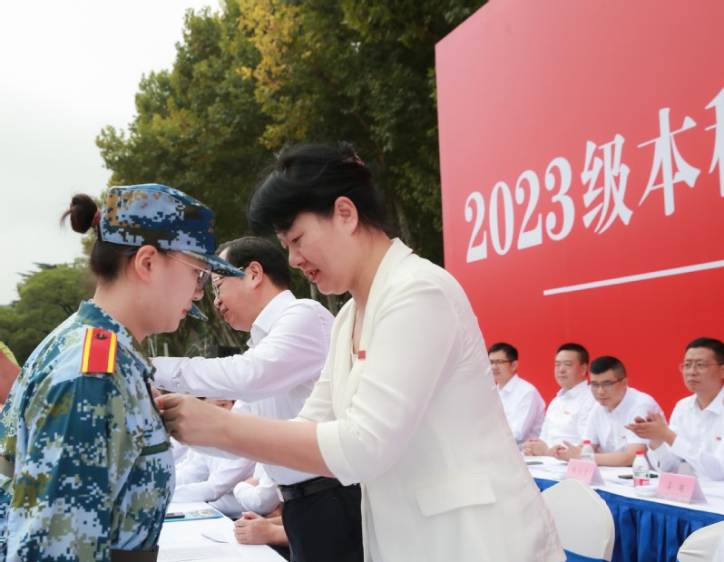 苍穹不负少年意,扬帆破浪踏足行。在 办学90周年的特别一年,学校迎来最年轻的主人翁。9月25日上午,6千多名来自祖国31个省、自治区、直辖市的2023级本科新生齐上“开学第一课”,同时汇报军训成果。校党委书记周南平、校长嵇春艳为新生代表,环境工程专业吴厚泽和政治学与行政学专业刘晓雨两位同学颁授校徽,热忱欢迎意气风发的新青年们加入 大家庭。张家港校区、苏州理工学院2023级新生开学典礼暨军训总结表彰大会同步举行。