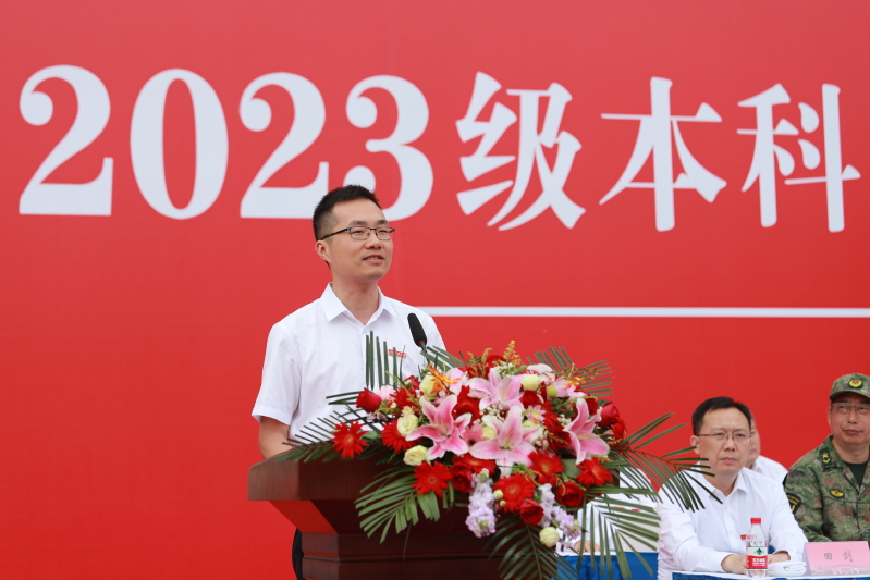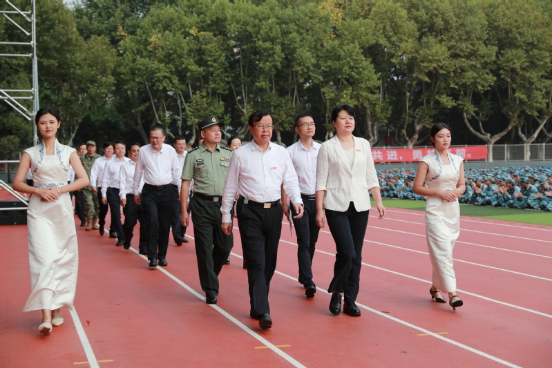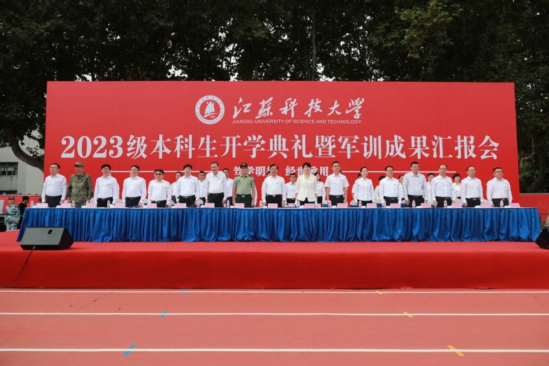 校党委常委、副校长胡爱祥主持 2023级本科生开学典礼。73091部队副旅长杨明付,2011届校友、南昌大学博士生导师王仲夏,校领导汤建、任南、安祥卫、李木旺、施伟东、周宏根、叶永林,相关职能部门、各学院负责人,承训部队教官以及镇江校区2023级本科生,在梦溪校区体育场参加开学典礼。