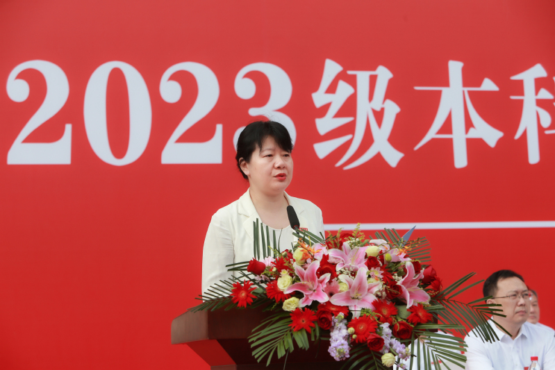 嵇春艳强调,创造,可以从校园开始。学校不仅致力于为同学们打造丰富的理论“金课”,也高度重视大家的实践创新能力培养,为帮助同学们克服理论和实践融合还不够的短板,学校正全力推动双创教育,鼓励引导同学们参与各项学科竞赛,积极探索科教融合、产教协同育人新模式。她希望每位同学,既能在书本中增长知识、锤炼品格,又能在实践中增长才干、练就本领。她说,多年来,学校始终坚持立德树人,恪守大学使命,涵育优秀品格,师生善行义举蔚然成风,校园道德模范层出不穷。希望未来,同学们以德励行、求真向善,在顺境中不忘初心,在逆境中不失自我,在振兴中华的使命引领下奋进求学路。