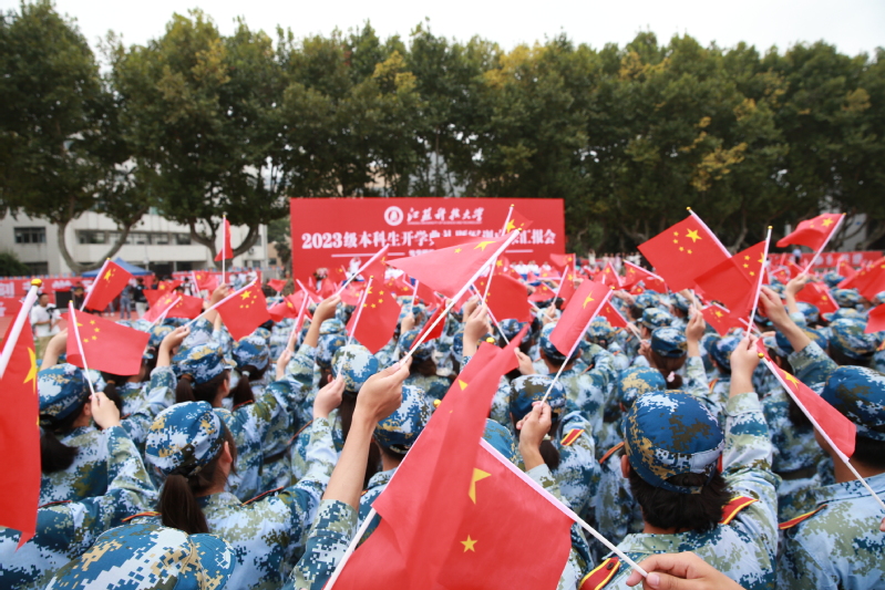 嵇春艳勉励全体新生做到三点“坚持”:坚持青春与时代同行,志存高远;坚持理论与实践同行,求真学问;坚持求知与成长同行,明德向善。她说,办学90年来,一代代江科大人矢志不渝以服务国家发展战略为己任,既为海洋强国、国之重器提供关键核心技术,也有小蚕种助力乡村振兴的大事业。心怀家国,顶天立地,是走向伟大复兴的责任担当,是小我融入大我的交融共生,“愿你们带着江科大人血脉里昂扬的家国情怀,书写属于自己的不凡华章。”