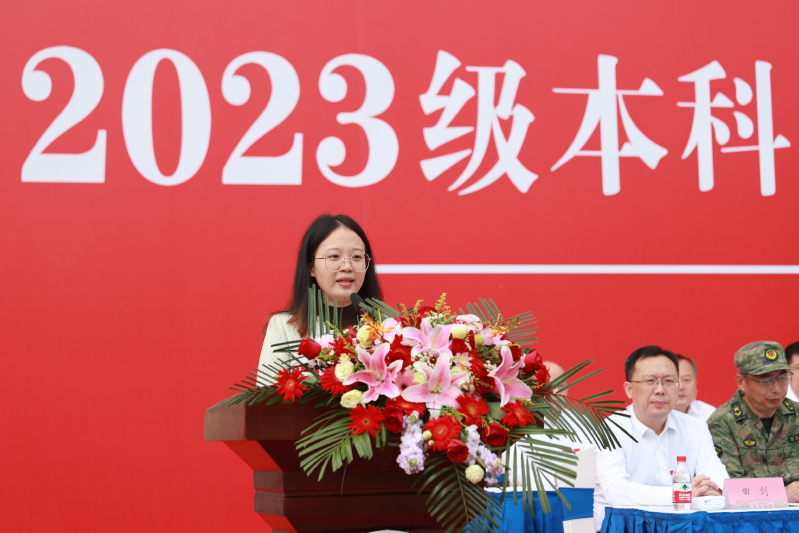 开学典礼上,教师代表、能源与动力学院教授喻洁分享了自己的大学生活经验,期许新同学尽快转变角色,做好学习规划,锻炼交往能力,从生活的自立走向人生的自立。