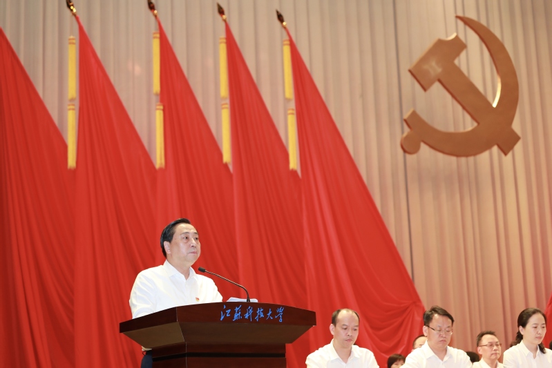 9月26日下午,中国共产党 第四次党员代表大会在长山校区船苑剧场隆重召开。镇江市委书记马明龙,江苏省委督导组组长、南京财经大学原党委书记陈章龙,省教育厅副厅长、党组成员、省委教育工委委员杨树兵,镇江市委常委、组织部部长张娟,省委督导组副组长、扬州大学党委副书记周如军,省委教育工委组织处处长陈艳以及督导组其他领导出席大会。开幕会由党委书记周南平主持。