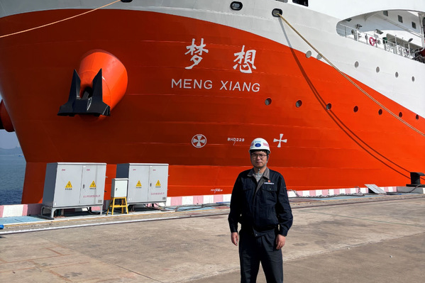 “‘梦想’号实现了我的报国梦、深蓝梦。”2024年11月17日,“梦想”号建成入列,习近平总书记专门发来贺信,信中说:“你们发挥新型举国体制优势,发扬开拓创新、团结协作、攻坚克难、勇攀高峰的精神,攻克了多项世界级技术难题,充分展现了新时代中国科技人员的自信自强和使命担当。”那一刻,伍常斌心潮澎湃,他说:“我们做到了!我们用脚踏实地的坚守践行了‘强国有我’的铮铮誓言。”