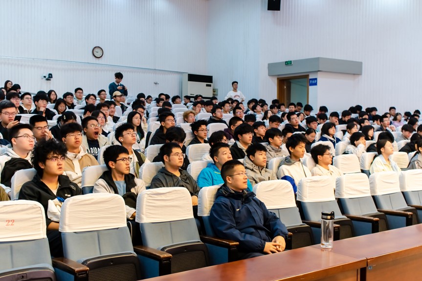 报告结束后,现场掌声经久不息。海洋学院水声工程专业25级新生王羽璇说道:“杨院士将个人命运与国家需求紧密相连,凭借坚定的信念和不懈的努力,在水声领域取得了卓越成就。他一生为国听海的坚守,给我带来的感动、震撼和思考是长久而深远的。”马克思主义学院科技史专业学生周峰说:“杨院士用行动告诉我们,科技工作者肩负着推动国家进步、民族复兴的重大使命。在今后的学习中,我会以杨院士为榜样,深入钻研专业,努力为我国的科技事业发展贡献自己的智慧。”报告最后,王彪呼吁在场师生:“希望师生们将杨院士的先进事迹转化为前进动力,践行初心使命,为强国建设和民族复兴贡献力量。”