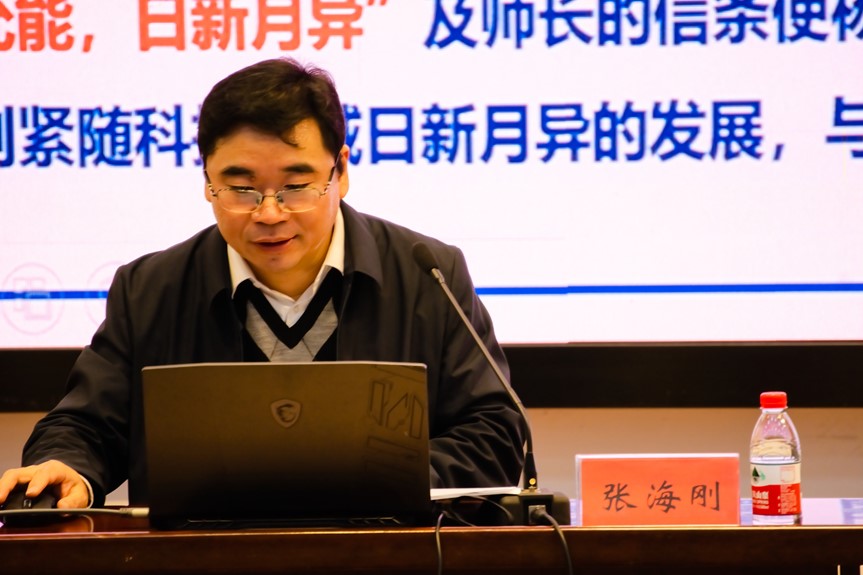主讲人张海刚,师从杨士莪院士从事海洋声学方面的教学与科研工作,哈尔滨工程大学教授,博导,现任哈尔滨工程大学水声工程学院党委副书记、副院长。在报告中,他从“书香门第,艰苦求学”“许党报国,创建专业”“强烈使命,勇攀高峰”“高尚情操,教书育人”四个主题展开讲述,引发在场师生深思。