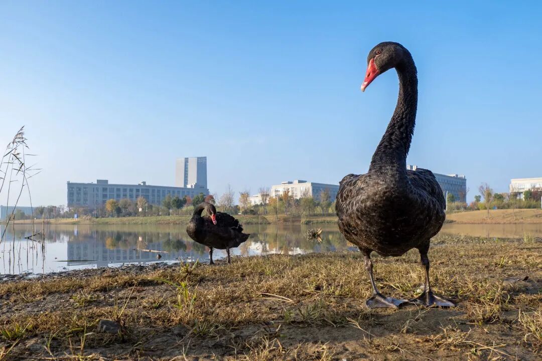 天鹅是一种美好的生物,黑天鹅则有着机遇的寓意,象征在生活中可能会有意想不到的机会和境遇。江科大正在抢抓各种发展机遇,全力推进高水平大学建设,向着越来越好的宏伟目标进发。今天的江科大以优美环境迎来“天外飞客”,明天的江科大将会以动人风采迎来“高朋满座”!