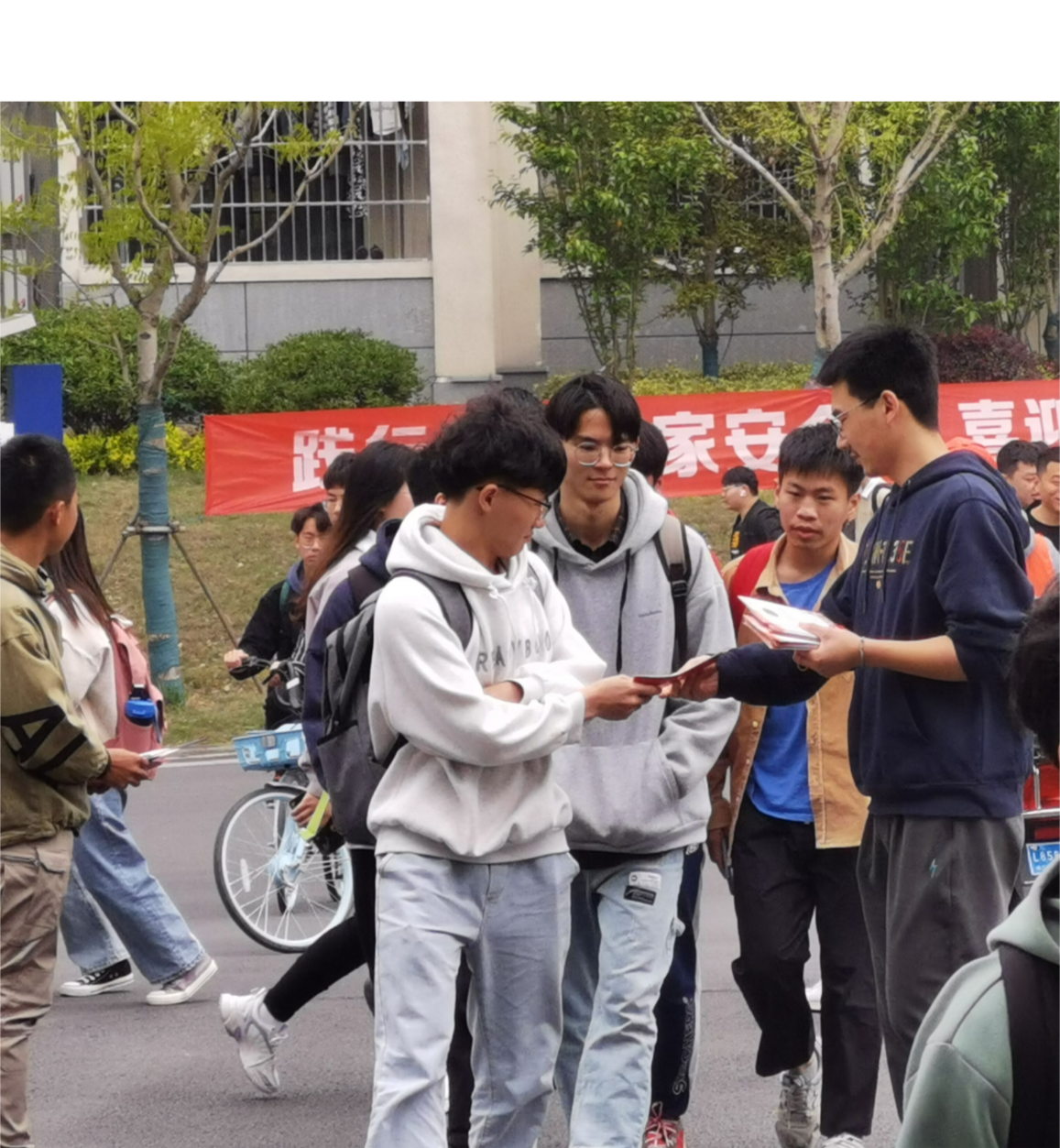 414日中午,国家安全主题宣传教育活动在长山校园内火热开展。今年活动主题是“践行总体国家安全观,统筹发展和安全,统筹传统安全和非传统安全,营造庆祝建党100周年良好氛围”。在校园主要路段,“国家安全无小小事,齐心协力卫中华”的横幅格外醒目。迷彩协会的同学们在东苑、西苑食堂人流比较密集场所,通过派发传单、手册等方式与来往师生互动,宣传国家安全的内涵和要义,普及《中华人民共和国国家安全法》《中华人民共和国反间谍法》《中华人民共和国反恐怖主义法》等法律法规,推广“12339”公民举报电话。