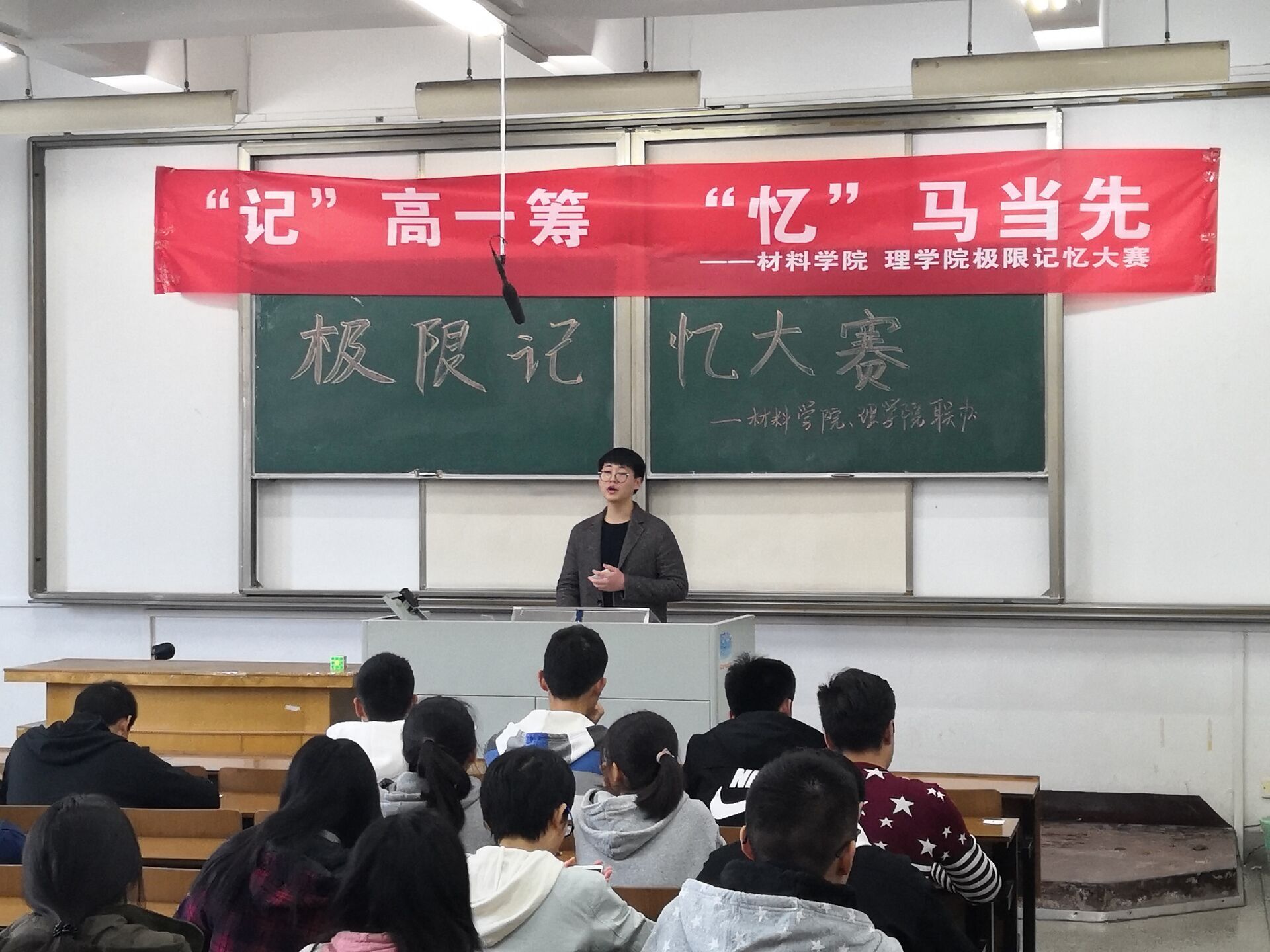 3月31日,由材料学院和理学院联手举办的第二届极限记忆大赛在西区综合楼隆重举行。本次大赛主题为“记”高一筹,“忆”马当先,吸引了来自全校54人参加比赛。
