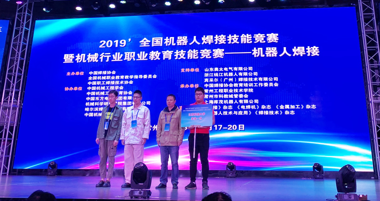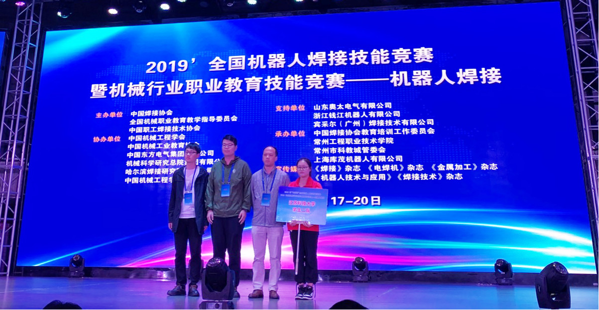2019“中焊杯”全国机器人焊接技能竞赛于2019年10月17-20日在常州举办。此次比赛由中国焊接协会、全国机械职业教育教学指导委员会等单位主办,共有来自全国10余省份、53支代表队参赛。我校材料学院黎文航、朱杰老师带领焊接专业本科生组建了2支代表队,与企业、高职院校代表队同台竞技。最终我校获得团体二等奖和三等奖,机器人焊接实操二等奖和三等奖,机器人焊接工艺设计二等奖和三等奖的好成绩。