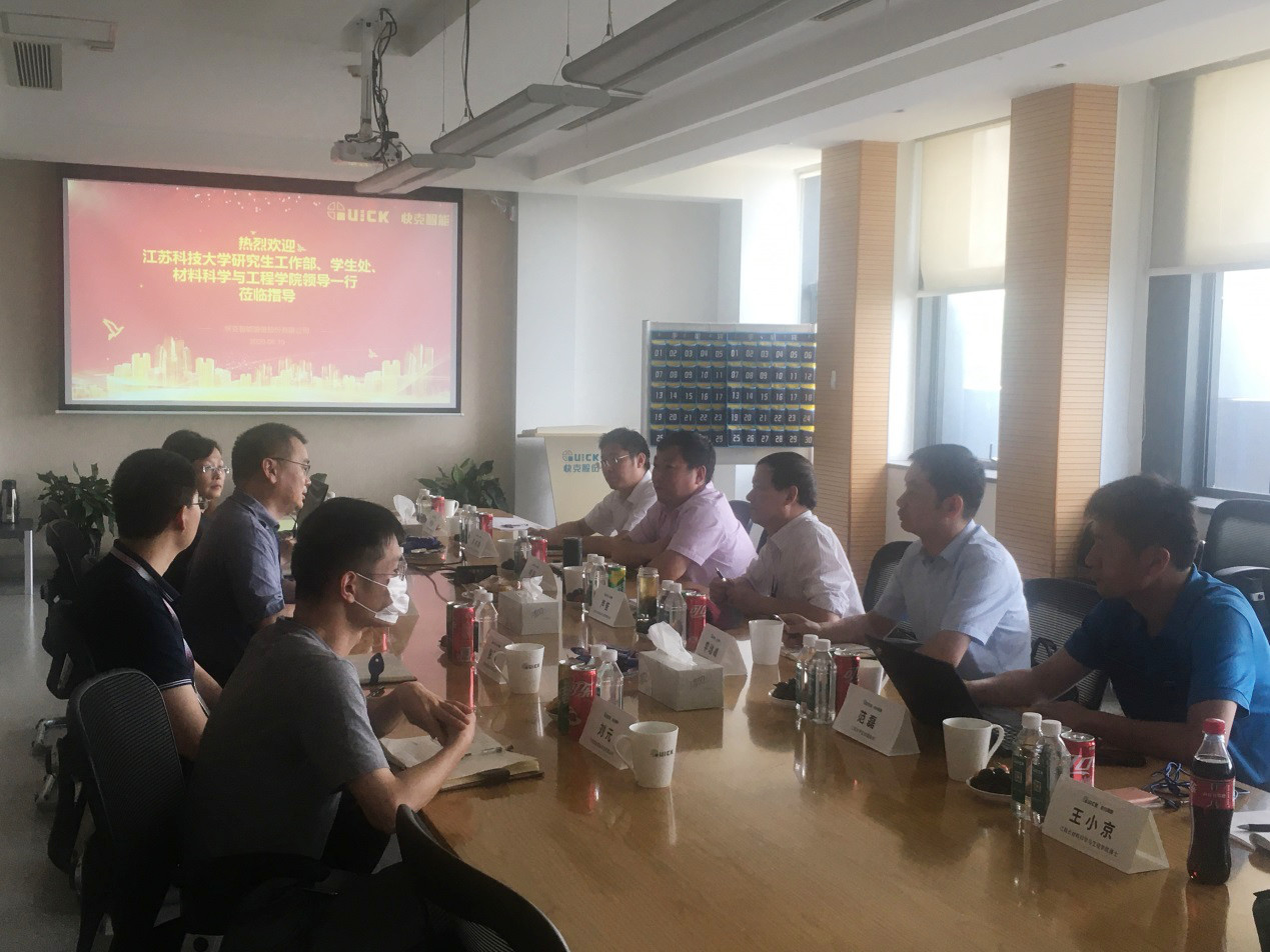 常州快克智能装备股份有限公司戚国强总经理等公司领导对我校党委研究生工作部、学生处和材料学院的来访表示欢迎,并与我校就电子封装、电子信息工程等专业的本科和研究生就业、学生实习实践、研究生工作站申报,以及联合制定钎焊机器人等国家标准、申报科技项目等方面展开了深入交谈,在多方面达成了初步合作意向。最后,参观了企业的研发中心和生产车间。