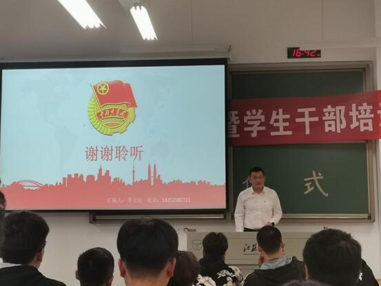 主讲人李文达以“什么是青马工程”为引导,详细介绍了青马工程的培养目标、原则和途径,并对青马学员和学生干部的作用做出强调。他指出,作为学生干部,既是荣誉,也是责任。大家应努力提高思想政治素质和综合能力素质,谦虚谨慎、戒骄戒躁,充分发挥桥梁纽带作用、模范带头作用和团结凝聚作用。同时,他也对青马学员提出了两点要求:一是努力建设好班级的支部委员会,提高其凝聚力、执行力和战斗力;二是在服务班级的过程中,要真正做到思想引领和价值引领,提高同学们参与班级事务的积极性。