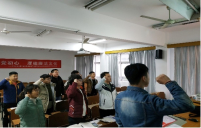 之后党员们面对党旗,重温入党誓词,再次宣誓,磨砺入党初心。大家一致认为党员同志需要对党章、党史、党纪进行定期集体学习,要时刻头脑清醒,防“微腐”杜渐,保持自身清正廉洁。