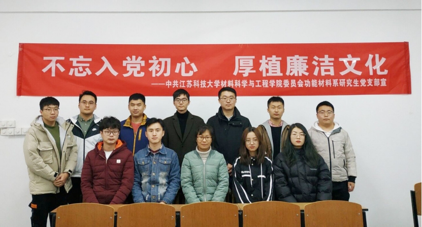 为深入开展我校十三届“校园廉洁文化月”活动,贯彻学习习近平总书记在第十九届中央纪委四次全会上的重要讲话精神,宣传校园廉洁文化,11月23日下午,材料学院功能材料系研究生党支部在梦溪校区开展“不忘入党初心,厚植廉洁文化”主题党日活动。