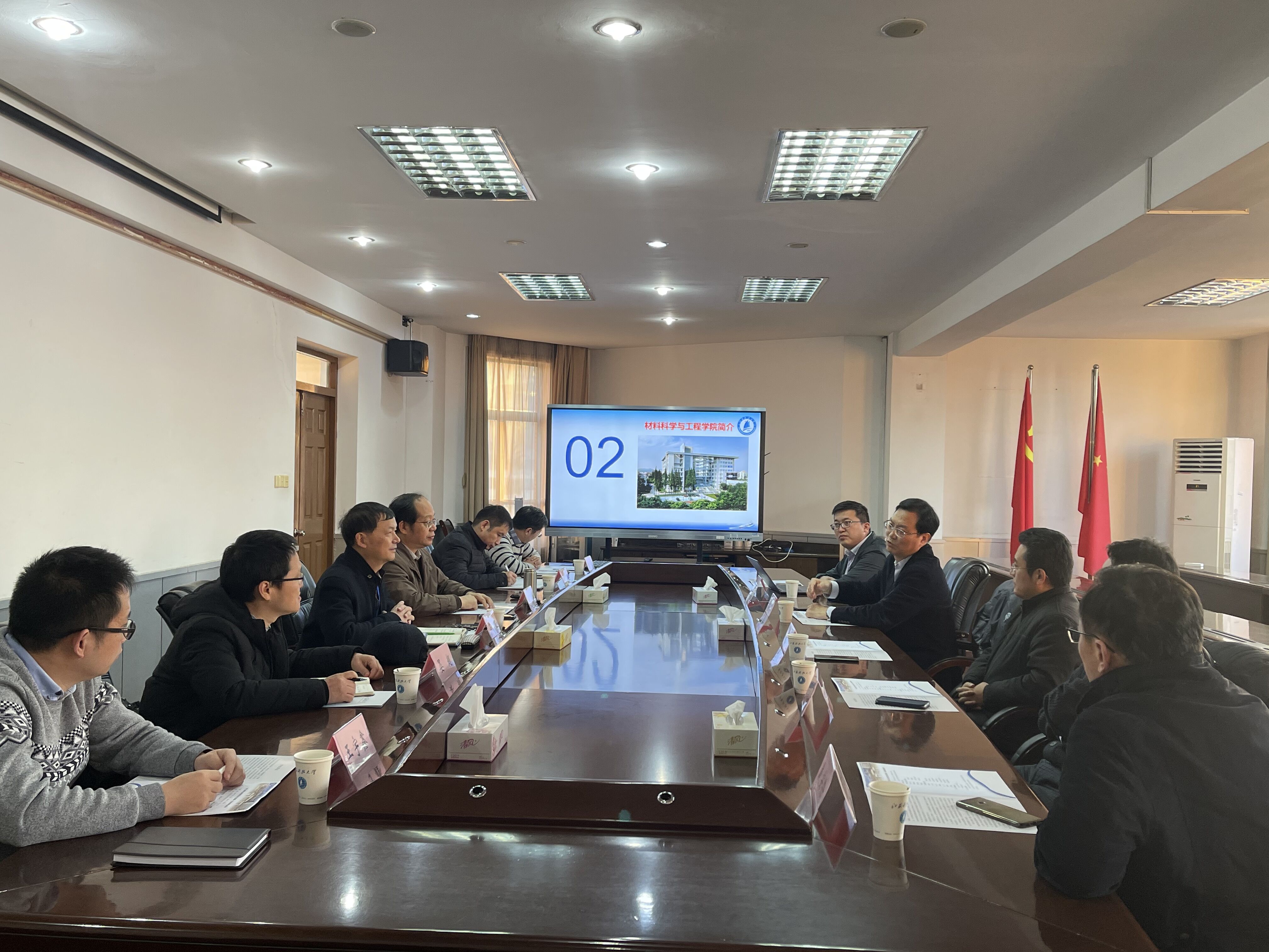 许俊华副书记首先代表学校对陈新书记一行的到访表示热烈欢迎,介绍了学校历史沿革、办学特色、优势学科、师资队伍、培养体系、新校区建设等方面的情况,并从船舶、海洋、蚕桑三大特色、产教融合、科研创新等方面重点介绍了学校的办学优势。他指出,学校将积极谋划“十四五”发展,加快推进行业、区域融合,促进学校快速、高质量发展。陈新书记介绍了核工业第八研究所的历史渊源、发展历程、研究方向、科研创新和产品应用等方面的情况。中核工业集团核工业第八研究所是中国核工业集团公司所属的专用材料研究所,建于1963年,专注于核能开发相关材料技术研究和专用设备研制以及相关材料技术开发推广工作,拥有高性能复合材料、微孔过滤材料、导电浆料、磁性材料等材料开发能力,形成了金刚石薄型砂轮片、特种粉末冶金制品、导电银浆、过滤系统等多样化、高水平、跨行业的民品产业。曾获国家发明一等奖、国家科技进步二等奖、布鲁塞尔尤里卡发明金奖等奖励,为我国核工业的发展壮大和科技进步做出了卓越的贡献。随后,芦笙院长详细介绍了材料学院近年来在 、专业布局、师资队伍、科研与育人、产学研合作等方面取得的成果。重点汇报了材料学院依托省优势学科,在先进焊接技术、腐蚀科学与防护技术的研究和应用情况,以及人才培养,服务行业和地方经济取得的主要成果。