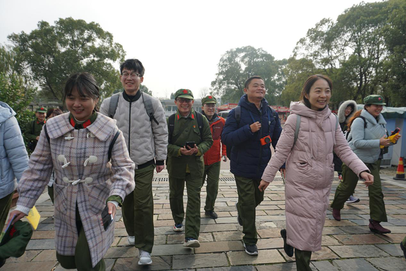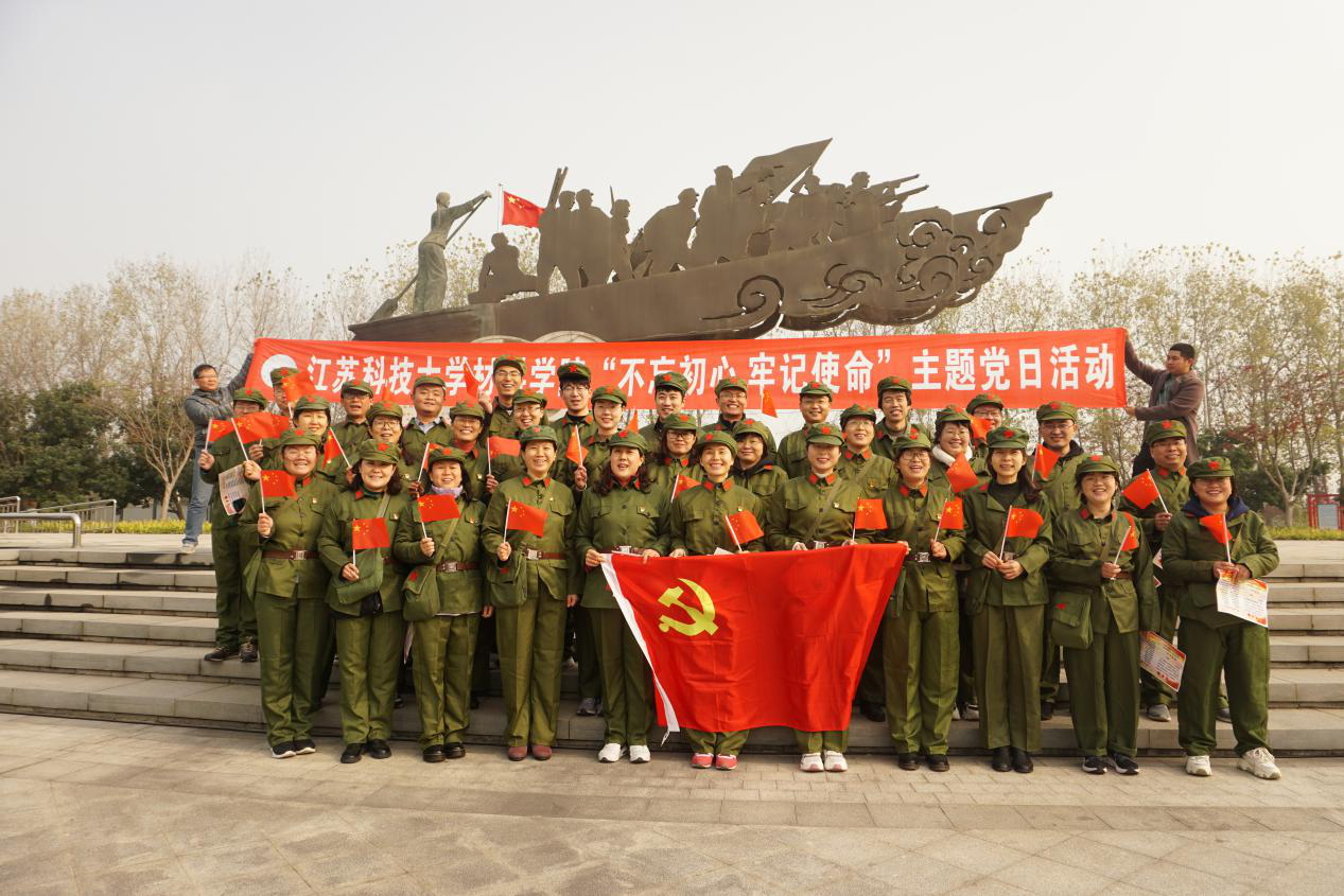 “我志愿加入中国共产党……”,在渡江战役纪念馆前,学院党委副书记赵莉代领全体党员重温入党誓词。党员们面对鲜红的党旗,统一身着红军服装,佩戴党员徽章,高举右拳,字字铿锵,重温入党誓词,永葆入党初心,彰显了学院全体党员不忘初心、牢记使命的坚定政治信念。