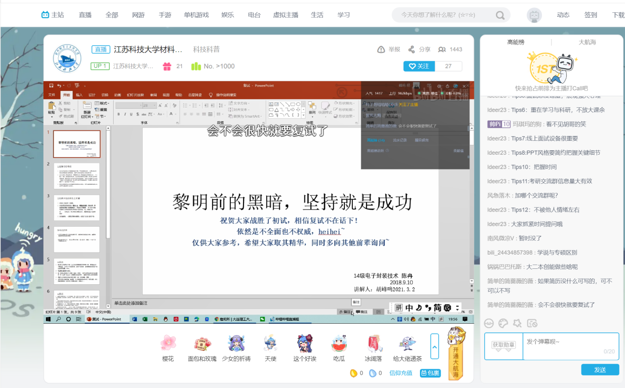 最后两位主讲人都分别回答了同学们在直播间提出的问题。分享会在直播间学子们热情的致谢中结束。