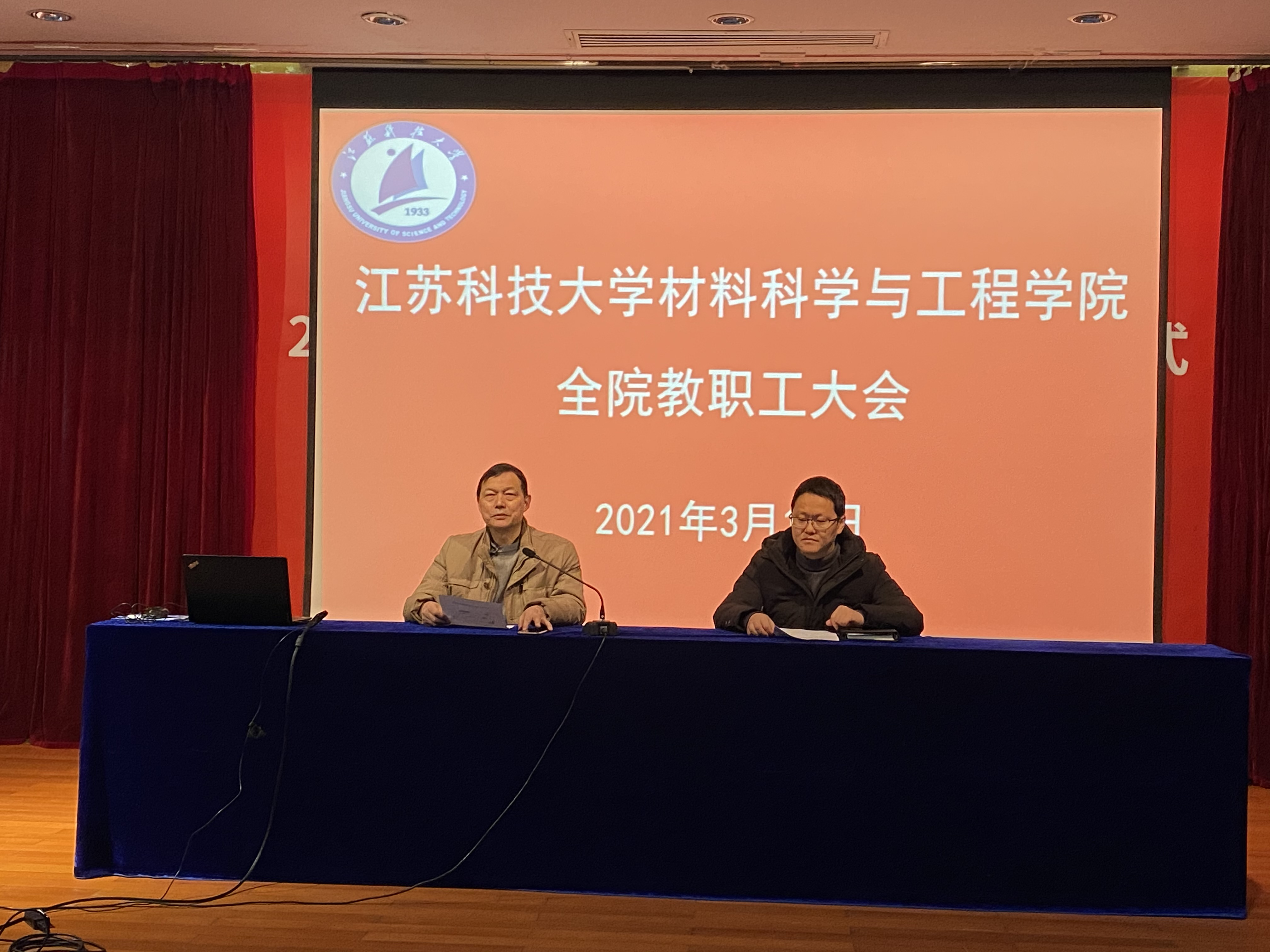 3月12日上午,材料科学与工程学院在东校区报告厅召开全院教职工会议。会议由学院院长芦笙主持。