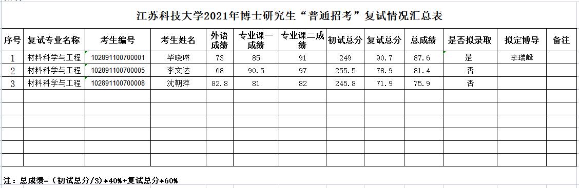 2021年博士研究生“普通招考”复试情况汇总表