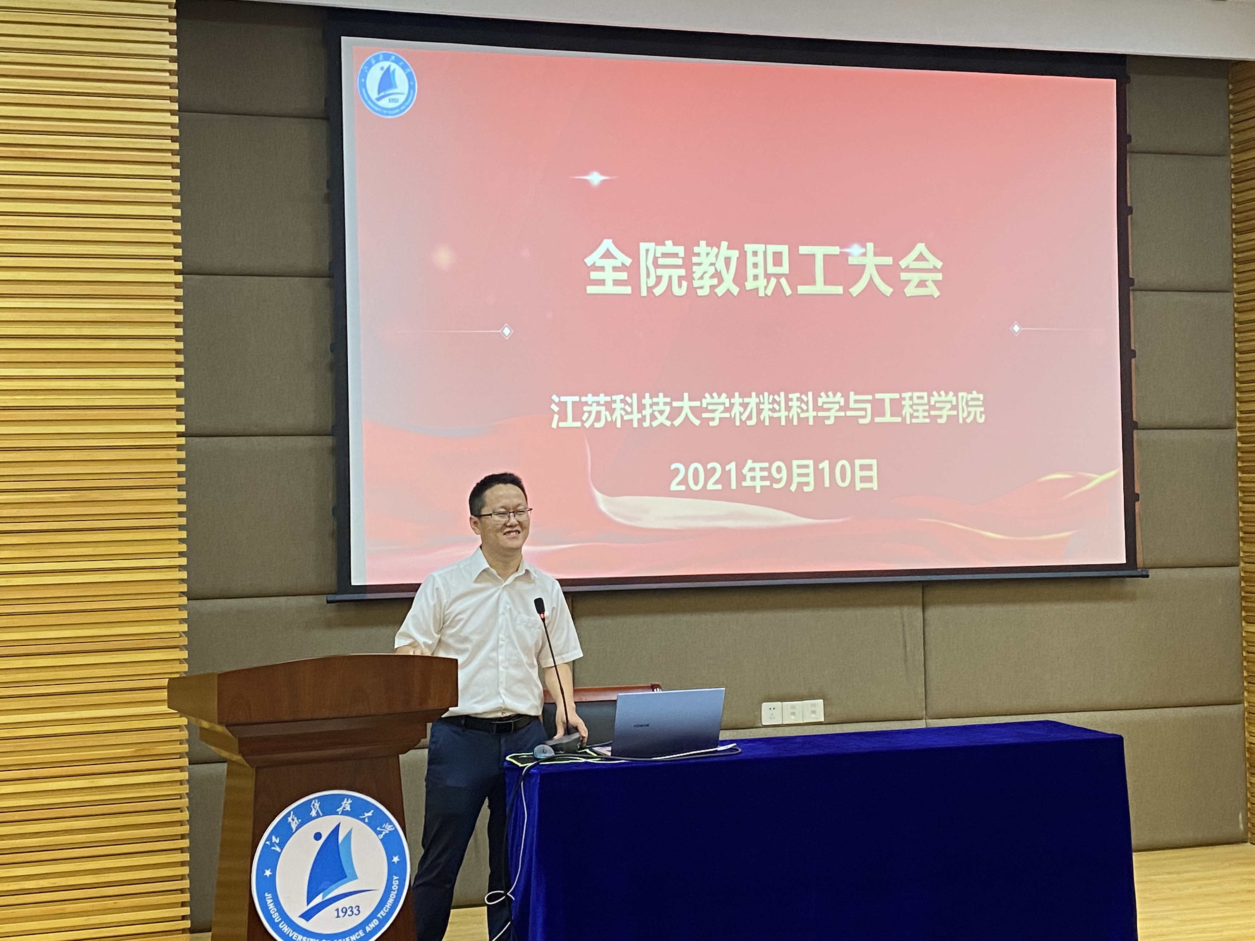 金秋九月,丹枫迎秋。9月10日上午,在第37个教师节来临之际,材料学院召开新学期全院教职工大会,总结学院上半年工作情况,对下一阶段学院工作进行部署和展望,并欢迎本学期到学院工作的8位新教师。学院领导班子成员、全体教职工参加会议,学院党委书记晏超主持会议。