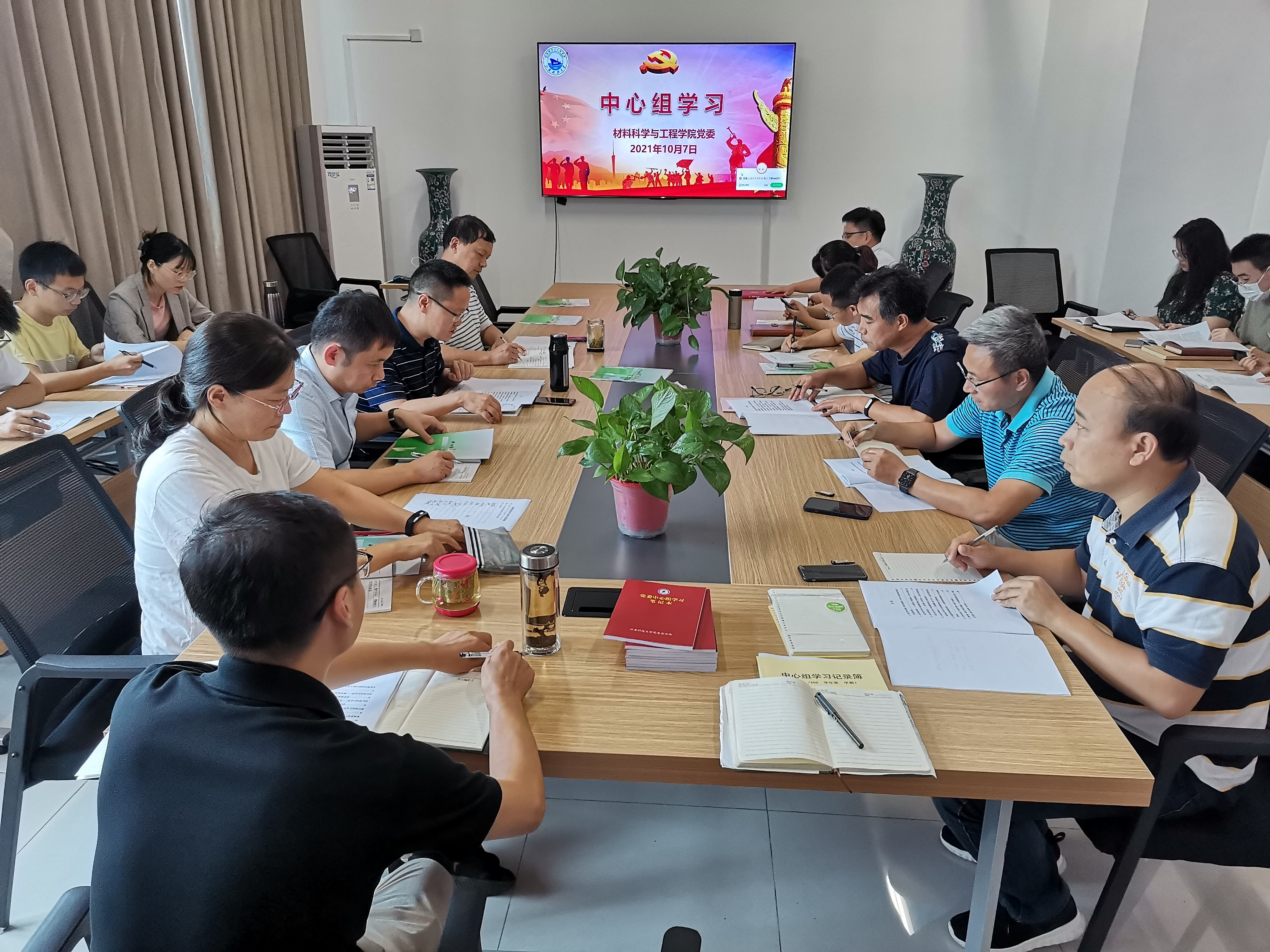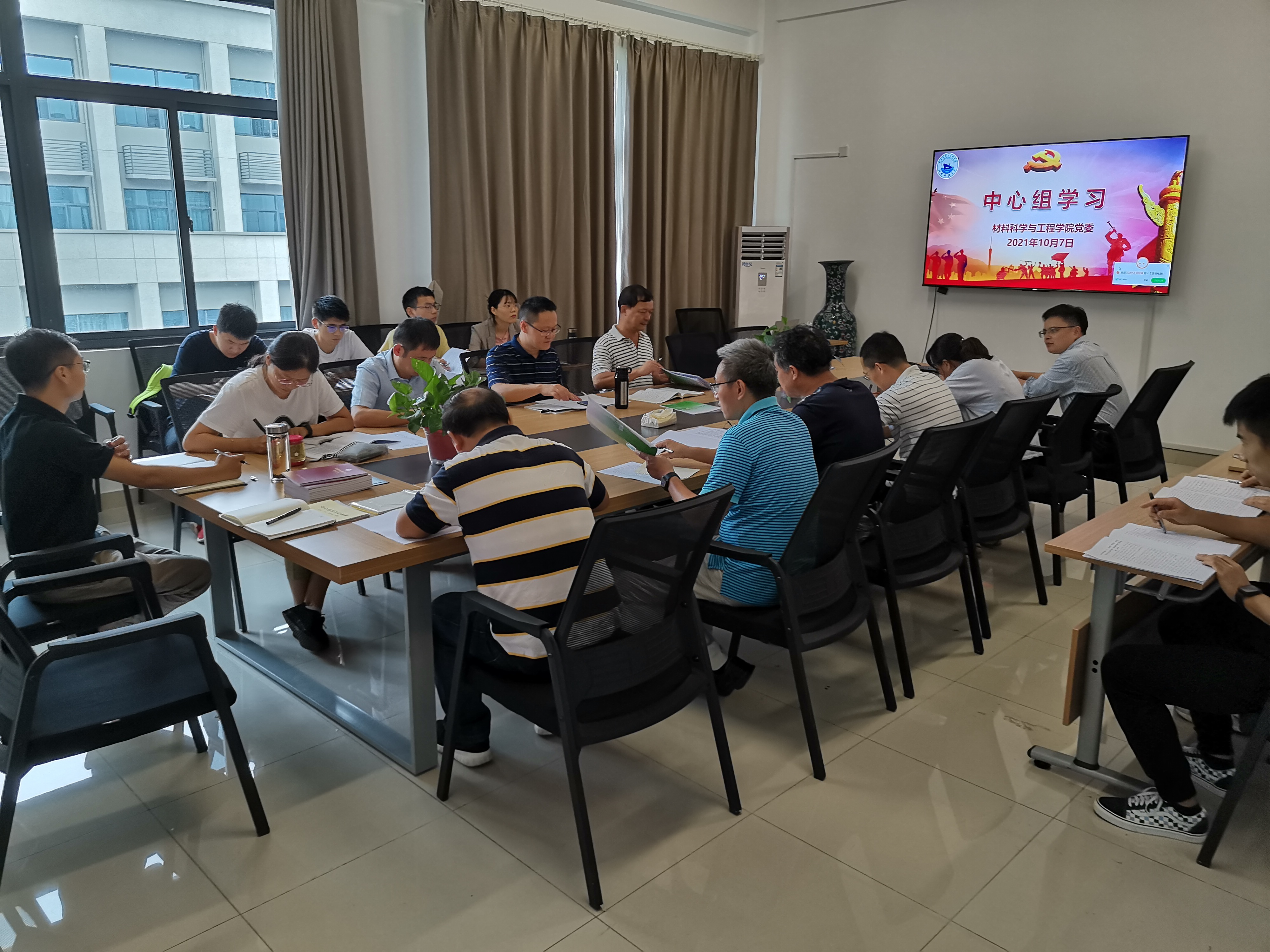 材料学院院长芦笙领学。他首先对本次中心组学习的内容进行了整体介绍,并带领大家深入学习了《习近平总书记在中央党校(国家行政学院)中青年干部培训班开班式上发表的重要讲话》、人民日报等主流媒体相关评论员文章,《坚定政治信仰培育时代新人——高校党建和思想政治工作进展成效综述》等重要文件精神。随后,他结合全面建成小康社会的伟大成就和中国共产党的伟大建党精神,帮助大家深刻理解、领会习近平总书记重要讲话的精神内涵,希望大家加强理论学习,提高党性修养,坚持以德立学、以德施教,努力在新时代新征程中留下许党报国的奋斗足迹。