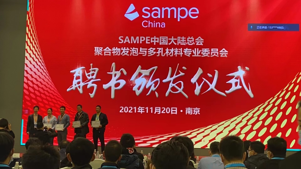2021年11月19-20日,第二届聚合物发泡与多孔材料高峰论坛(PFPM)在江苏省南京市召开,由华南理工大学、哈尔滨工程大学、郑州大学、中国科学院、华东理工大学、中山大学、北京工商大学、西北工业大学、北京化工大学、福建工程学院、 等400多位专家学者参加线上与线下联合会议。我院周应国教授报告了“多次开模发泡注射制品的微孔形态及变形行为”的最新研究进展情况,并受聘为SAMPE中国大陆总会聚合物发泡与多孔材料专业委员会委员。