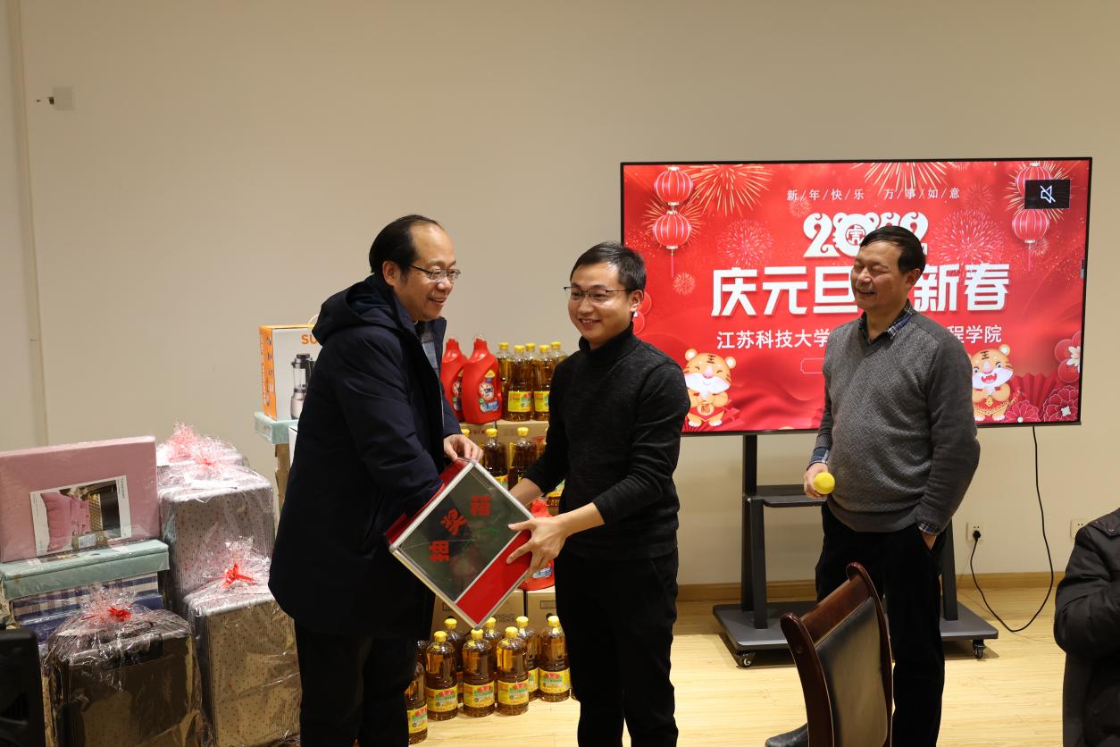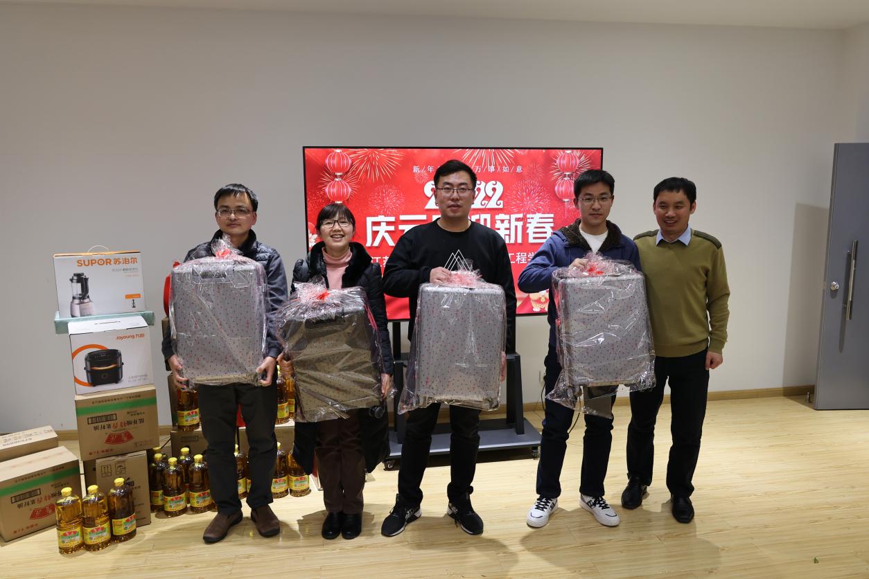 活动幸运抽奖共有四次。下午14时,第一批获奖名单出炉,刘坤、郭平义、高飞、杨兰兰、周慧玲、邵勇、牛牧野、刘宗镇、董真真、江淼10位老师获得三等奖喜提床上四件套。二等奖为行李箱一个,由郭伟杰、戴伟绩,夏春智,王泽鑫四位老师获得。徐玲利、施敏杰获一等奖,各自摘得空气炸锅一个。特等奖由雷锋获得,奖品为一台破壁机。最后,领导们为获奖教师颁发奖品,并为全体教师送上新年礼品。