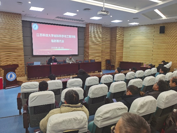 首先,芦笙院长代表学院党政做工作报告,从党建思政、师资队伍、 、专业建设、科研创新、人才培育、新校区及实验室建设等七个方面进行了工作总结。2021年,材料学院坚持以习近平新时代中国特色社会主义思想为指导,在学校党委和行政的领导下,以立德树人为宗旨,开创学院工作新局面,多项成果创历史新高:荣获中国国际“互联网+”创新创业大赛中获金奖、江苏省友谊奖,2个专业获工程认证专家进场考察,2个专业获评省一流专业;新增主持国家级科研项目14项,参与科技部重点研发项目1项、省成果转化项目2项,各类科研到款经费突破3200万元, 材料学ESI前1%高被引论文达12篇。同时,芦院长对学院“十四五”发展规划进行了说明,并提出了2022年工作任务和目标。