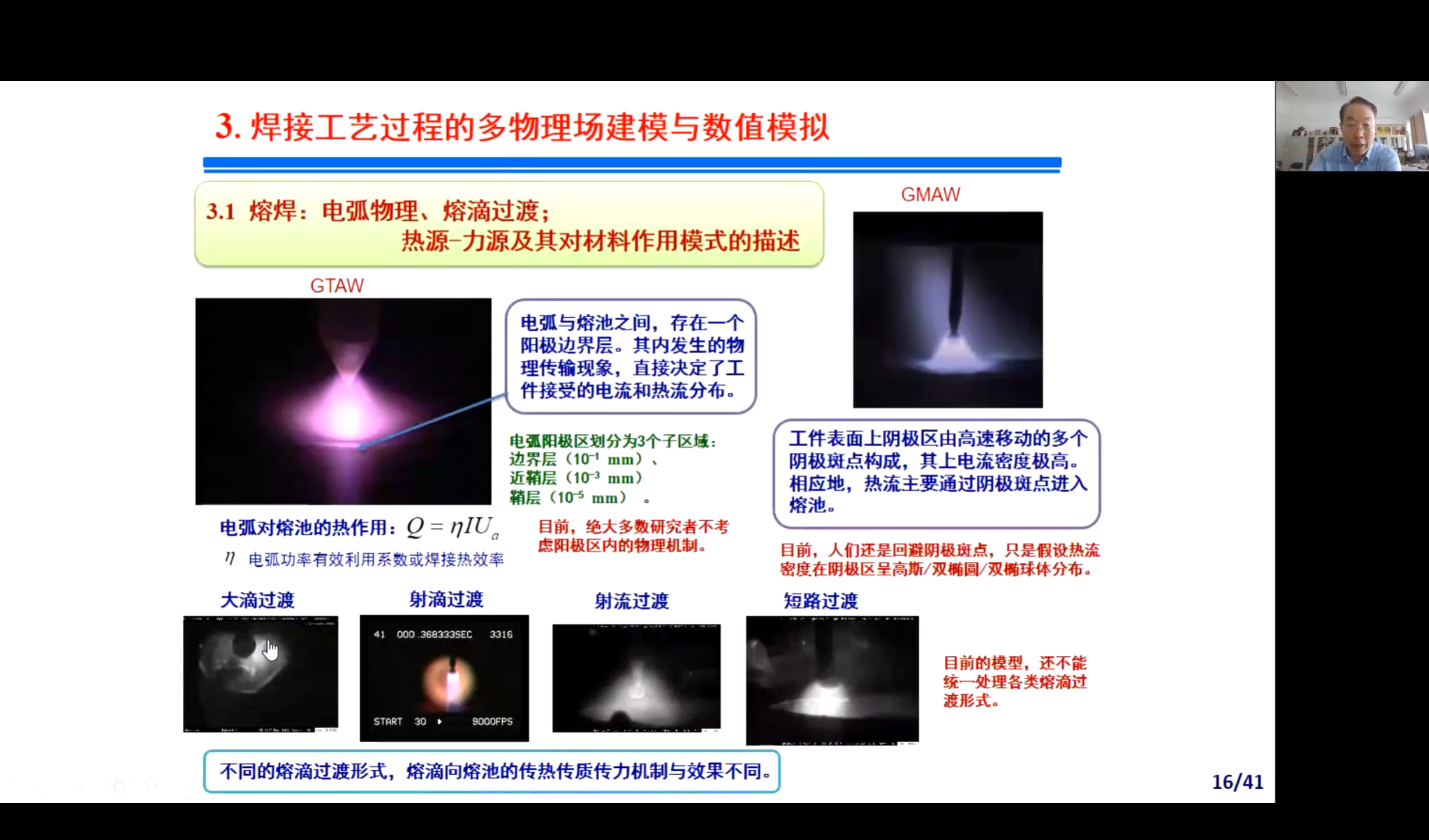 本次报告武教授从材料焊接技术在国民经济和国防建设中的地位与作用展开,主要介绍在“中国制造2025”背景下焊接领域所面临的挑战,焊接多物理场耦合作用过程特点,焊接过程的多物理场建模与数值模拟,焊接工艺过程的视觉检测与智能控制等,最后介绍了焊接工艺的扩展——增材制造工艺的相关发展。
