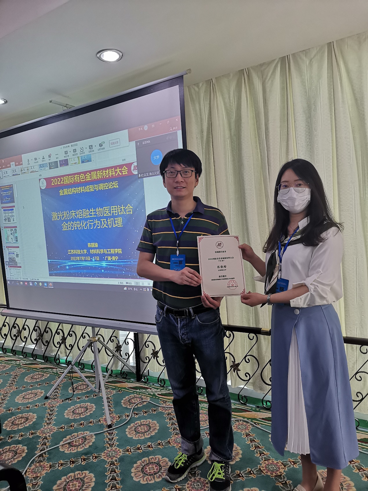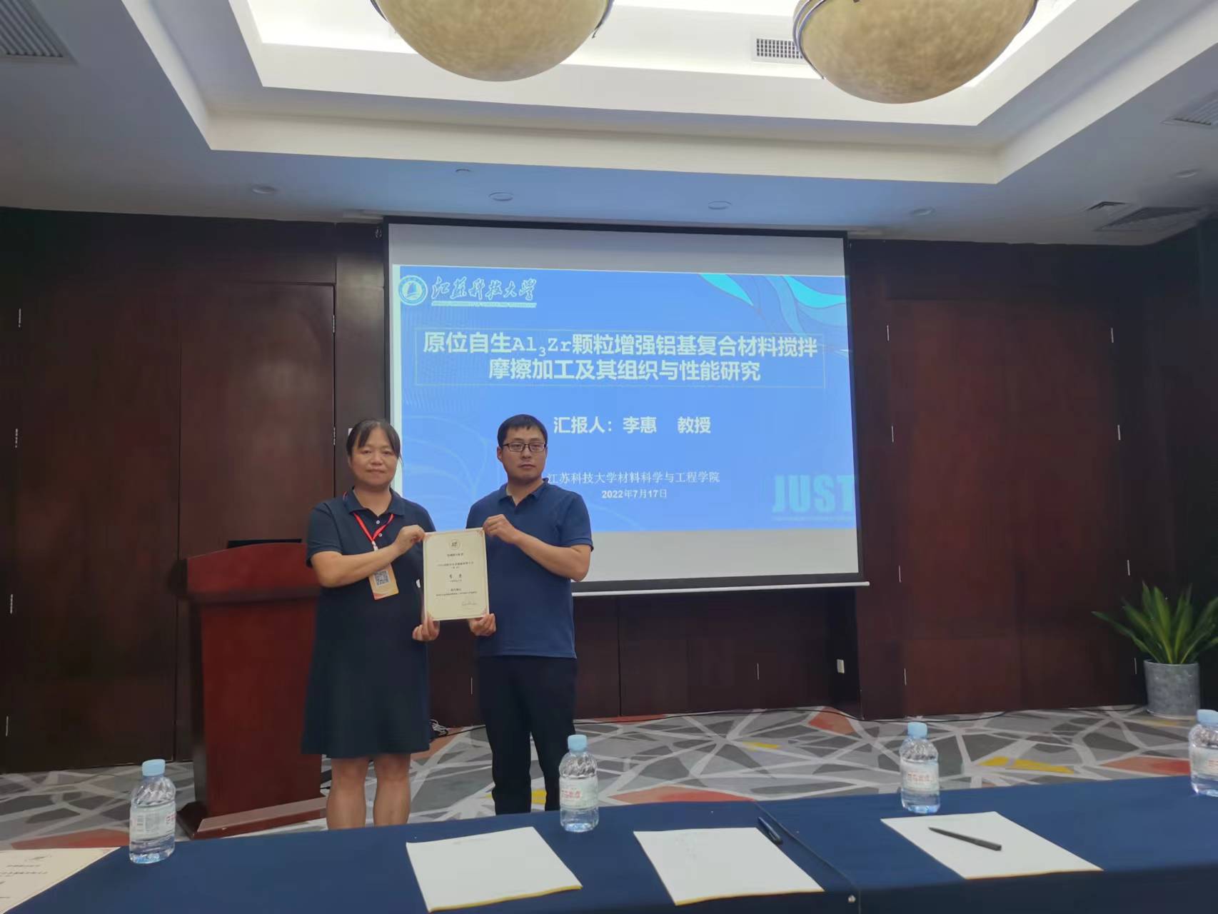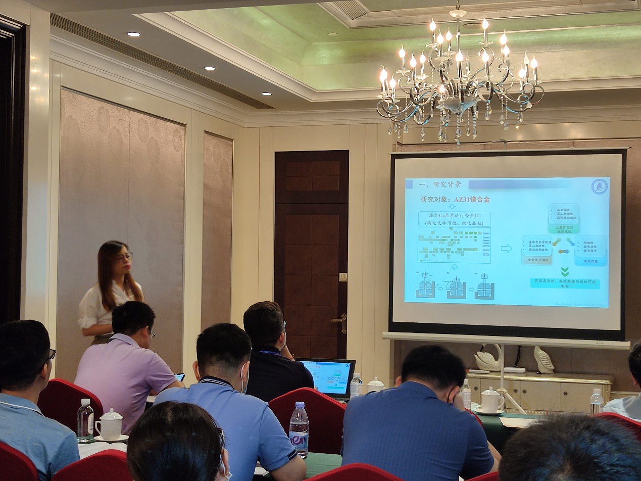 会议期间,材料学院李惠教授,陈靓瑜副教授,臧千昊老师,彭金华老师,谢秋媛老师,分别作了“原位自生Al3Zr颗粒增强铝基复合材料搅拌摩擦加工及其组织与性能研究”、“激光粉床熔融钛合金的钝化行为及机理”、“双辊铸轧Al-7.9Zn-2.7Mg-2.0Cu合金组织与力学性能的研究”、“室温挤压对AZ31镁合金力学行为的影响规律”、“Ca合金化协同ECAP加工改性AZ31镁合金阳极的研究” 等学术报告,材料学院多名研究生褚宇航,李楠,秦博渊,旋浩楠,刘昊,居殿春,李凡,戚浩宇,章哲旭,顾钧杰,张正一也分别做了精彩的报告,并与参会代表进行了深入的学术交流。
