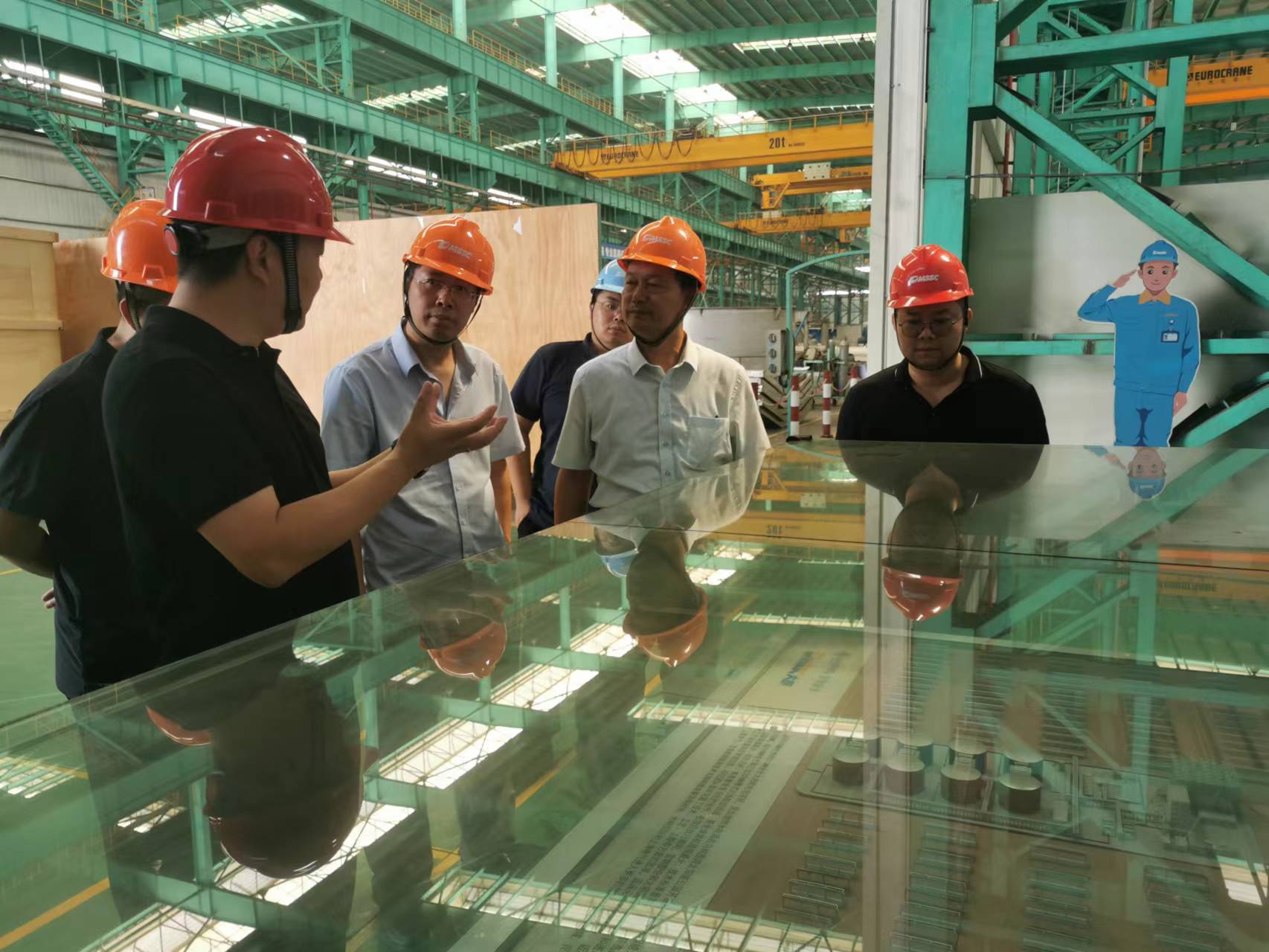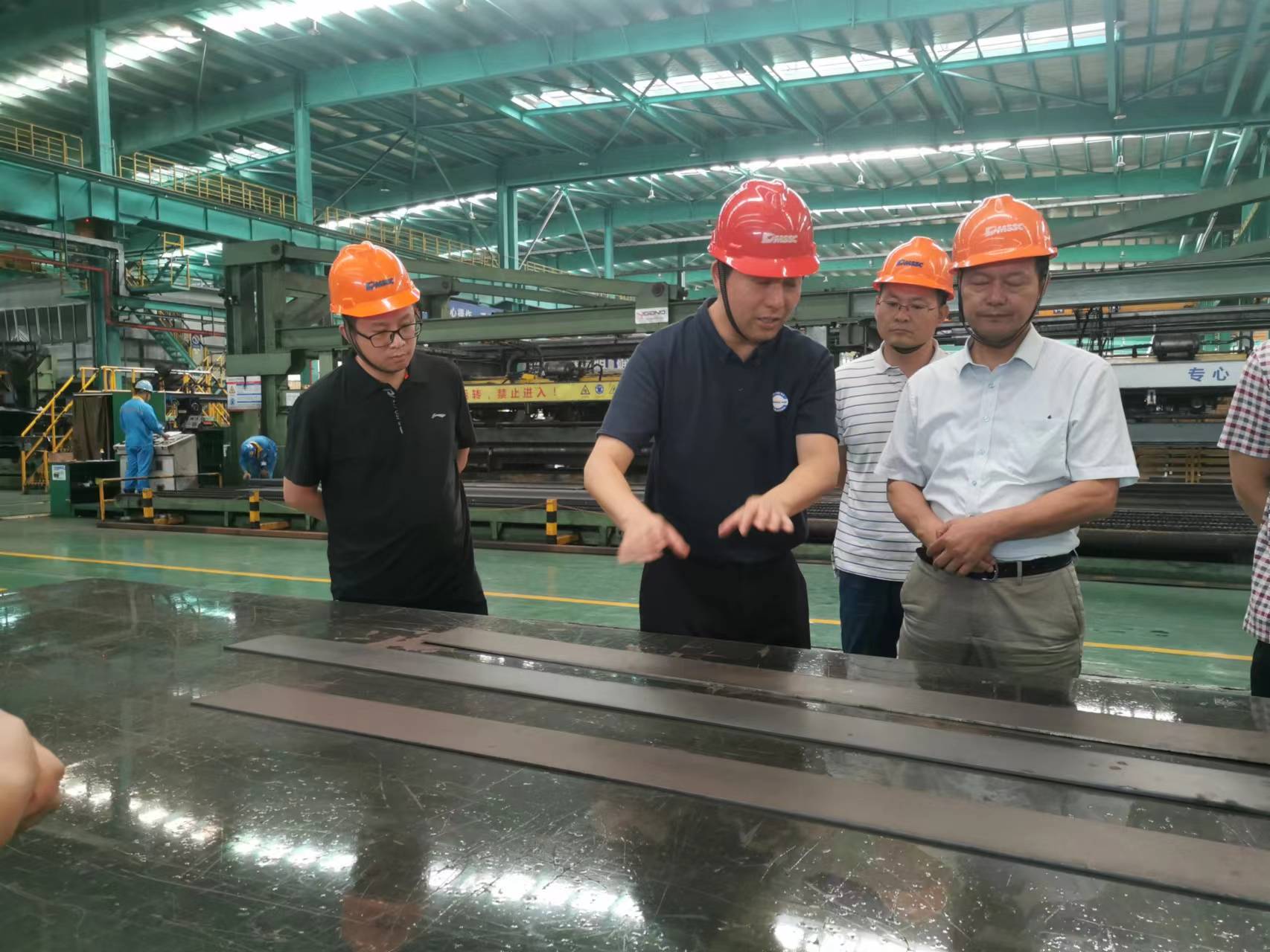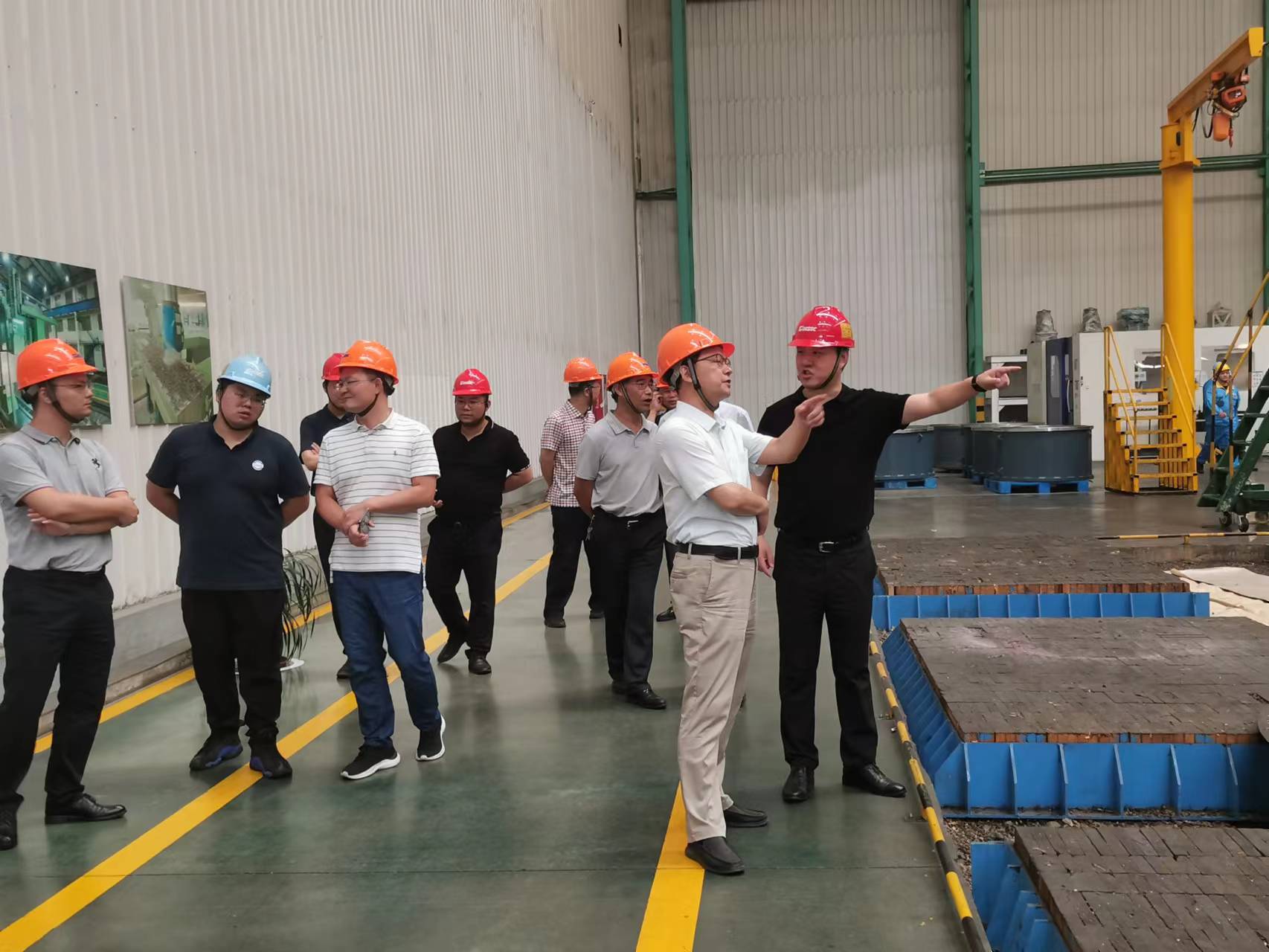 首先,王小建总监、朱利民总经理陪同芦院长一行参观了企业生产车间,介绍了公司生产车间的总体布局、建设规划、产品结构以及相关先进制造装备和生产线,从裁剪、切割、坡口预制、研磨、焊接、热处理、成型、喷涂、机加工、总装等方面详细讲解了公司产品的生产流程,以及相关制造装备和制造能力。