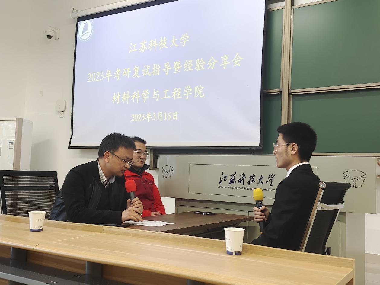 考研复试是考生在通过初试的基础上,对考生业务水平和综合能力的进一步考察,关系到是否能最终入选研究生,是考研过程中举足轻重的程序。为助力同学们最后冲刺,材料学院于3月16日在笃学楼105举办“心所致,梦必达”考研复试指导暨经验分享会,特邀学院研招办负责人陈部湘老师指导复试政策与流程,学院夏春智老师、刘坤老师进行复试模拟,邀请目前在山东大学、大连理工大学和我校读研的2022届学长进行复试经验分享。材料学院辅导员刘志红、刘甜甜、涂艺凡、100多名2023届考研学生及低年级学生参加会议。会议由材料学院党委副书记杨海涛主持。