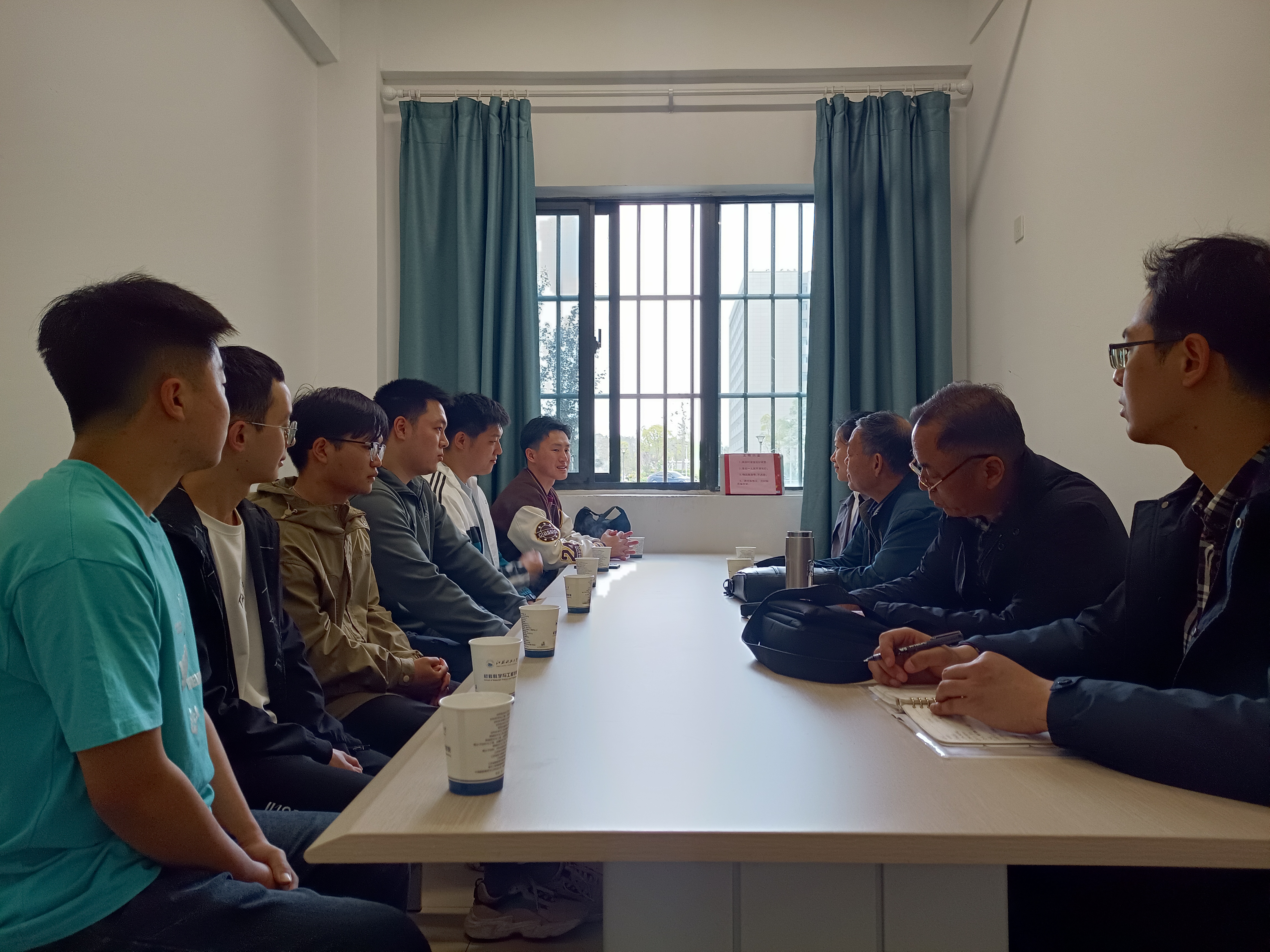 随后,四位老师邀请本科生和研究生毕业班的同学前往10号组团交流室进行座谈。老师们重点了解学生们就业与升学的状况,详细询问了就业的薪资待遇和发展空间,对学生中所存在的疑虑进行回应,及时现场答复处理。座谈会上同学们分享了自己的考研经历以及未来打算,表示在校期间学习饮食、出行、起居等状况都得到了极大的改善。