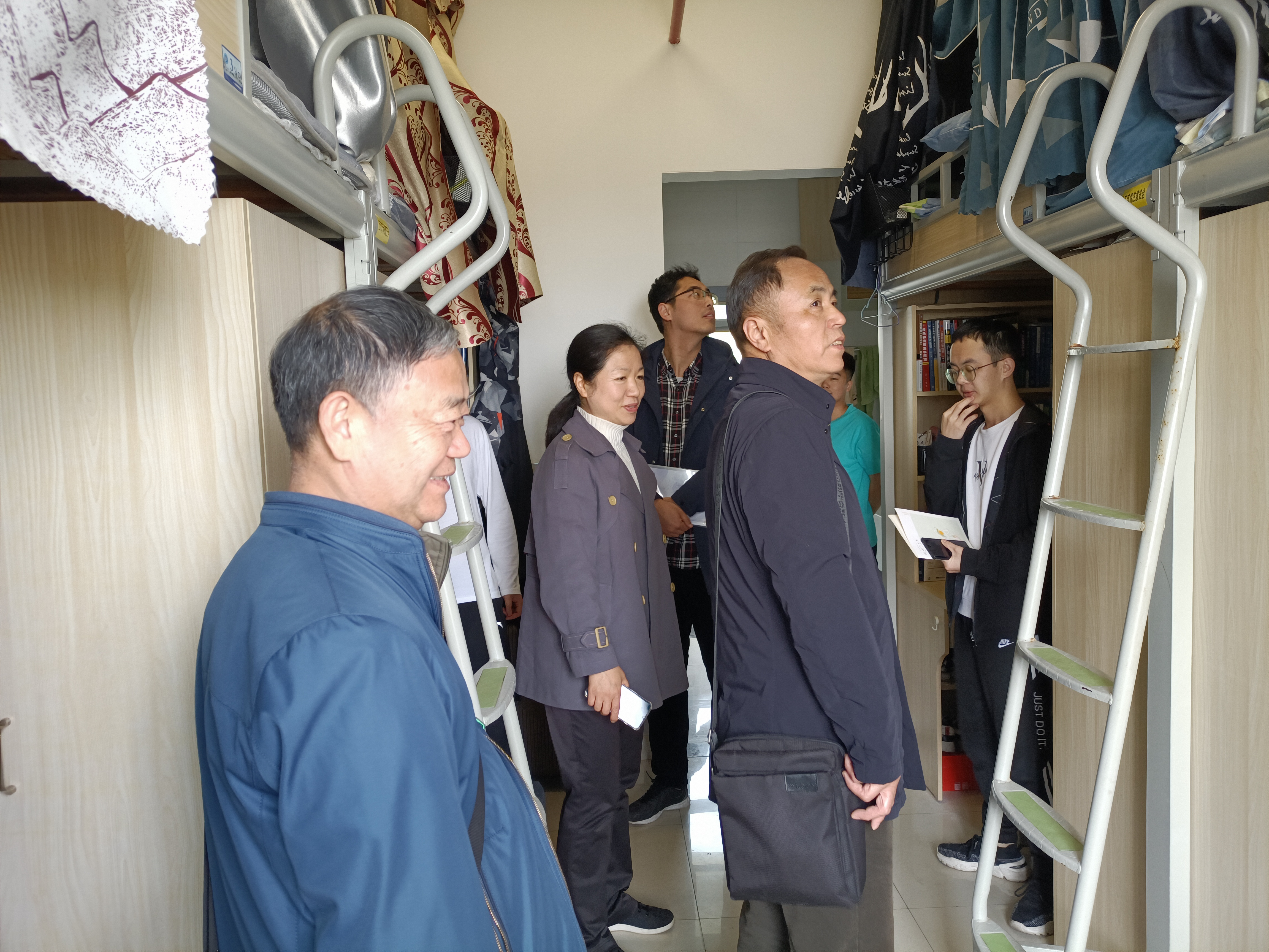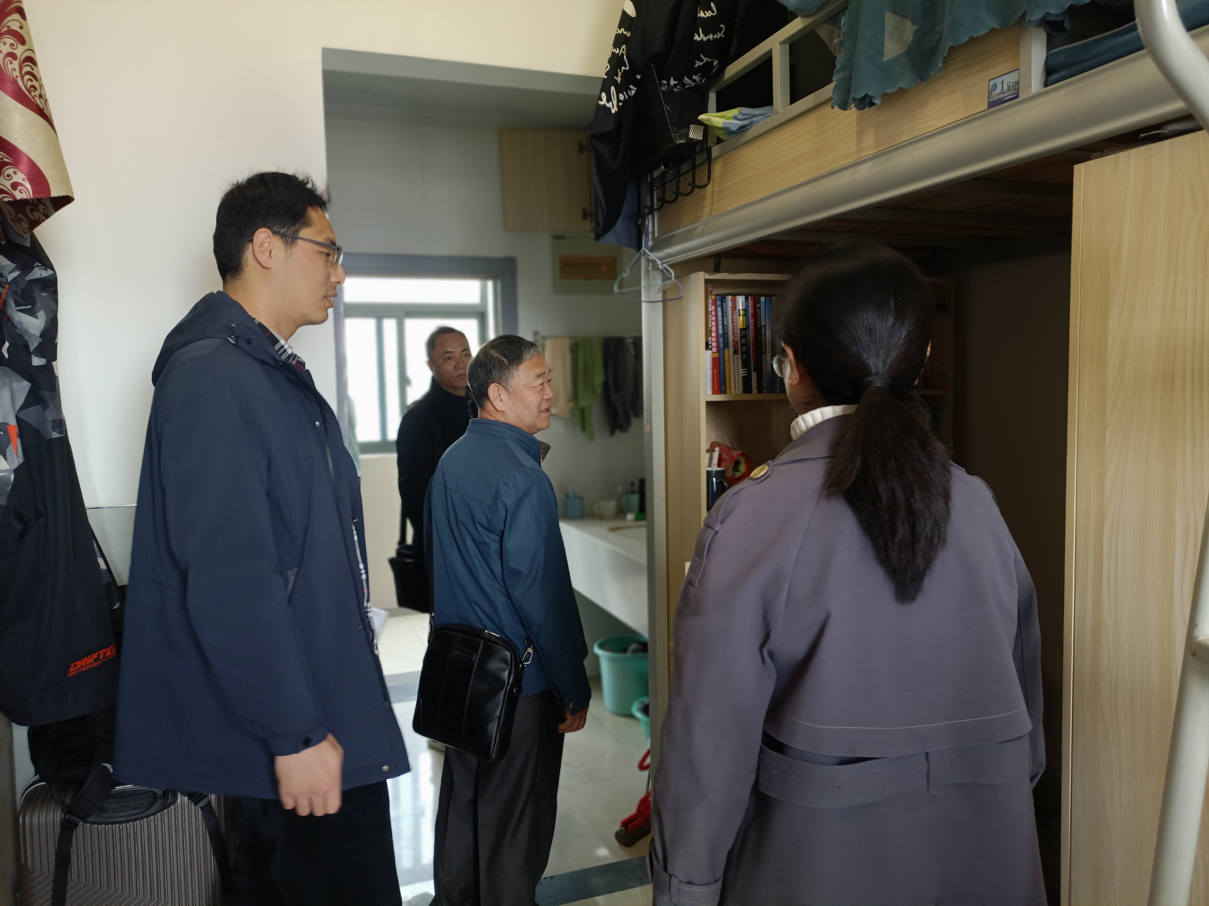 此次调研采取宿舍访谈、小组座谈等方式开展,紧紧围绕学生关心关切上下功夫。四位老师首先前往学生寝室进行了走访和谈话。关工委专家坚持安全无小事,查看了室内内务整理和阳台杂物摆放的情况,排查宿舍用电安全、消防安全隐患,及时发现苗头性问题,提出整改建议,避免安全“小事”酿成“大错”。