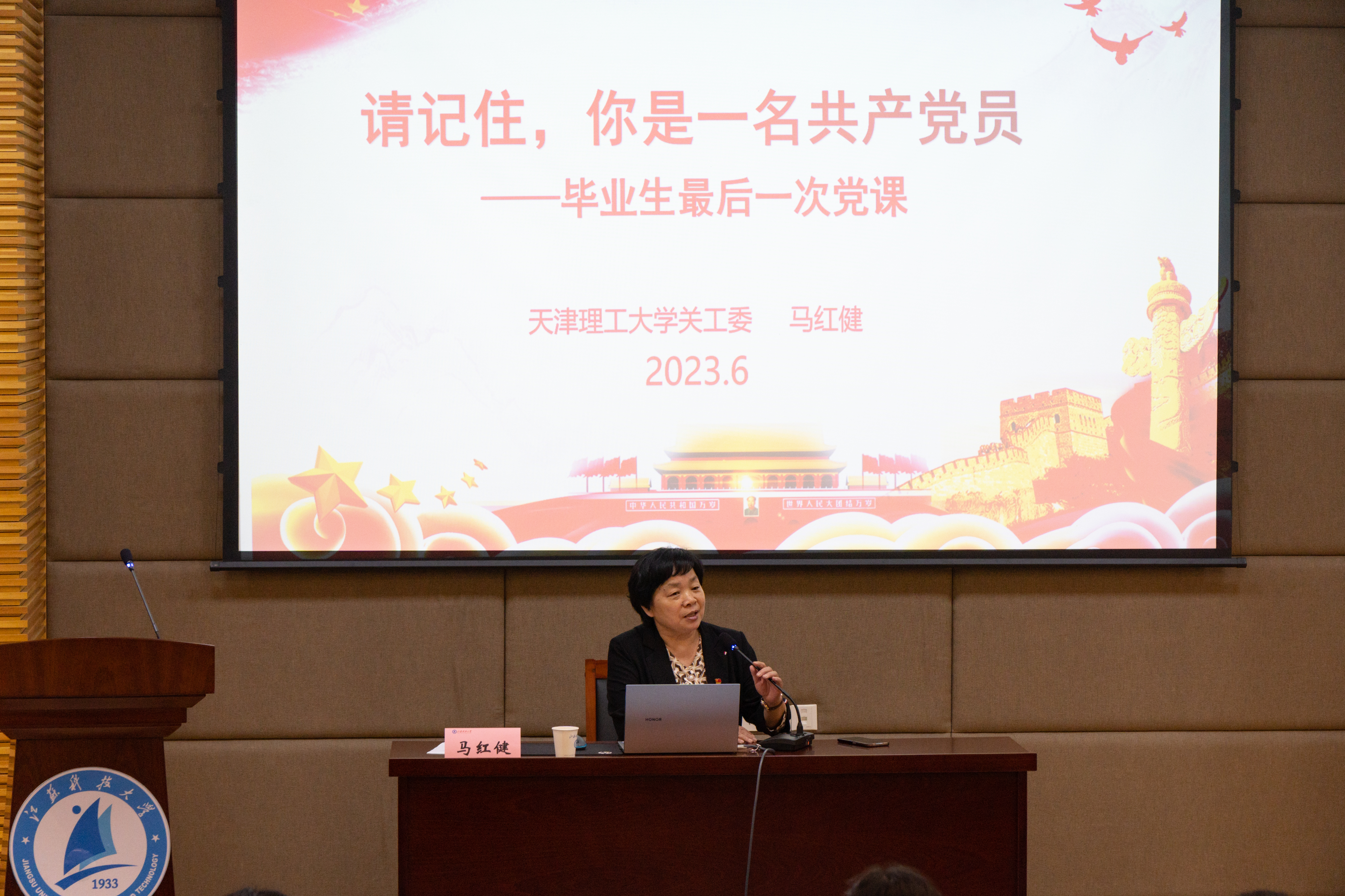 下午,材料学院、环化学院在图书馆101报告厅联合开展“2023届毕业生党员离校教育大会”。马红健老师以《请记住,你是一名党员》为题,结合自身作为一名四十多年老党员的心路历程,从一生的政治选择、中国共产党党员是什么样的人、永远“不忘初心、牢记使命”三个方面为毕业生党员做了理想信念教育和廉洁教育。她寄语毕业生党员,“组织上入党一生一次,思想上入党一生一世”,党的伟大事业靠青年一代实现,希望大家谨记党的宗旨,坚定理想信念,将实现中华民族伟大复兴的历史担当,转化为不断建功立业,在实现中国式现代化新征程中的前行步伐。