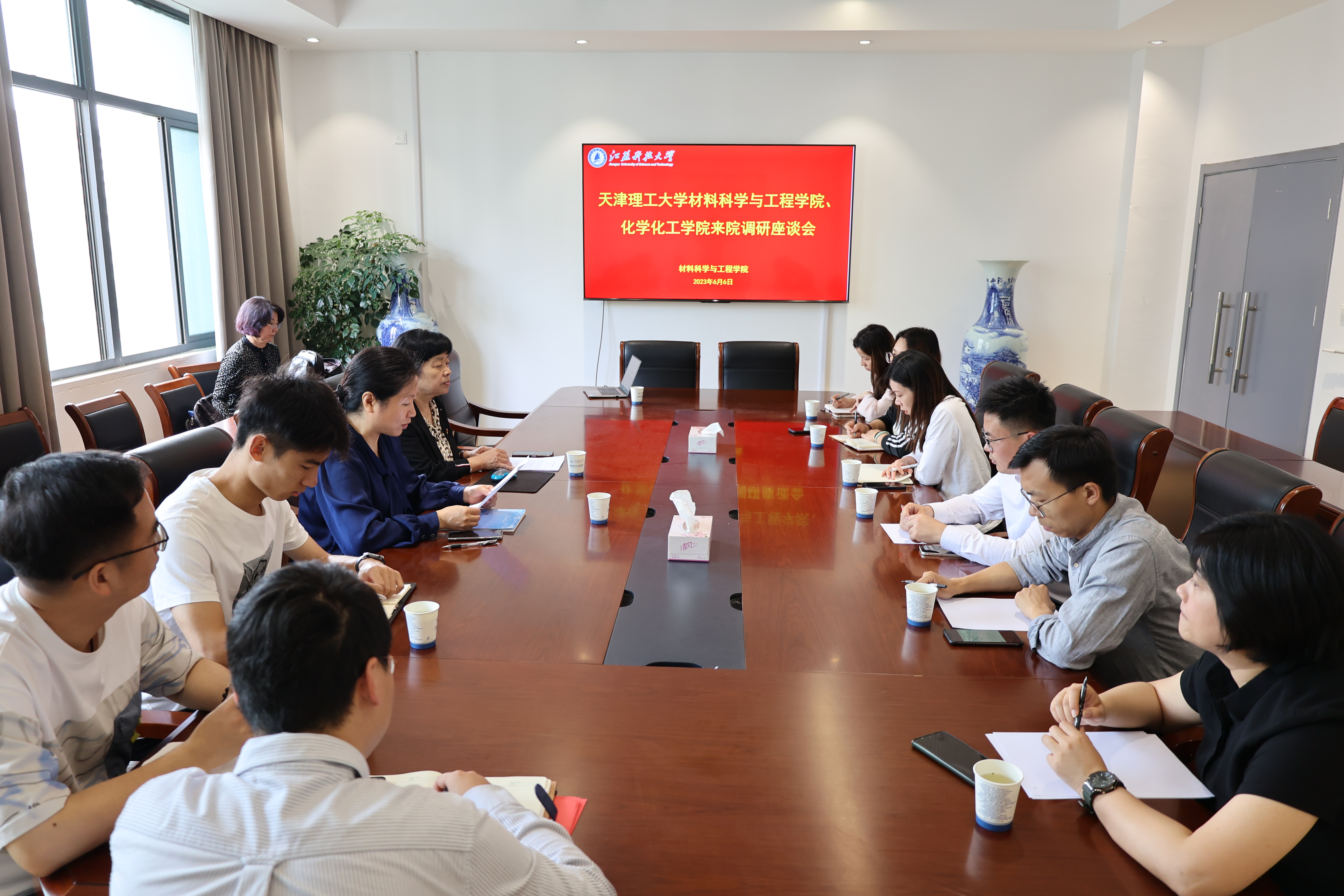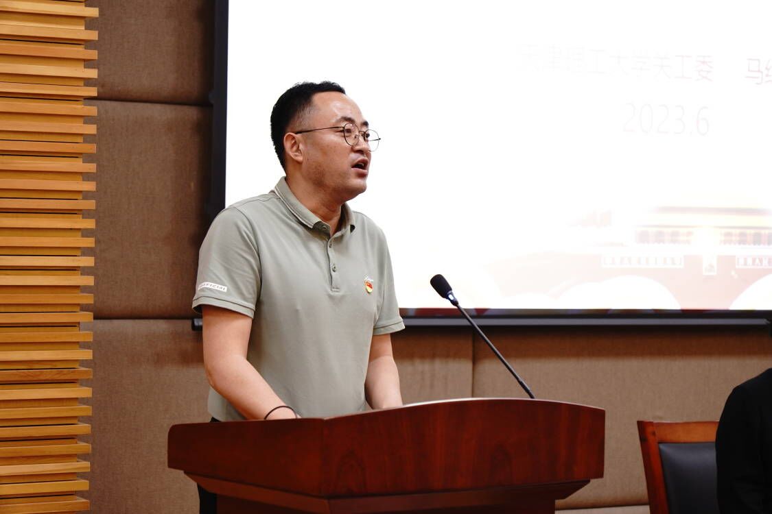 为深入学习贯彻党的二十大精神和习近平新时代中国特色社会主义思想,聚焦高质量党建引领高质量发展,6月6日,天津理工大学关工委副主任、全国教育系统先进工作者马红健,化学化工学院党委书记姜海燕一行来我校材料学院、环化学院,就学生工作、党建双创与三全育人进行交流并为毕业生党员作主题讲座。材料学院党委书记李瑞峰、副书记杨海涛,环化学院党委书记袁爱华、副书记王召征,校党委组织部正科职组织员王会,学院辅导员、组织员、党支部书记等参加交流座谈会。