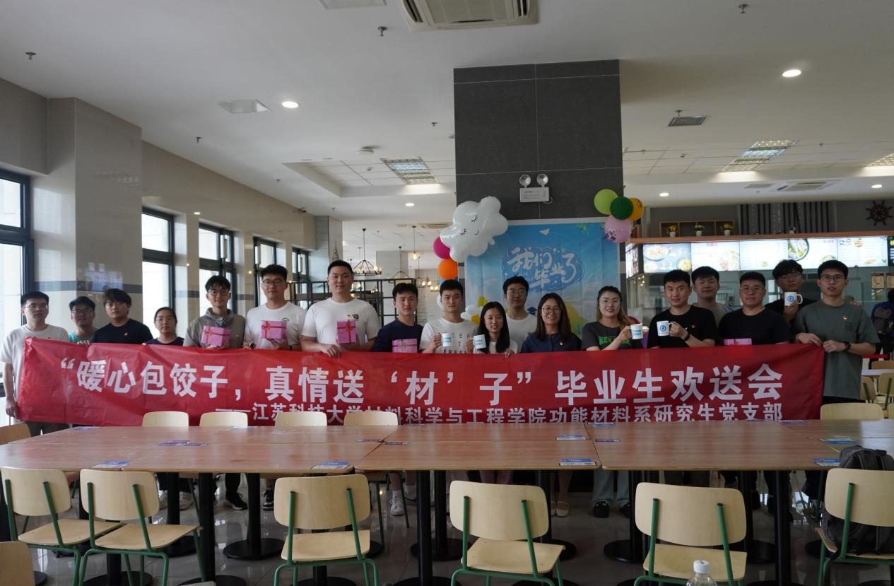 岁月如梭,转眼又一届毕业生即将完成学业,翻开人生新的篇章。为营造温馨和谐的毕业氛围,加强对毕业生的人文关怀,将毕业生的热情引导到感恩母校、立志成才和服务国家建设的实际行动中来,6月13日, 材料科学与工程学院在东苑食堂二楼开展“暖心包饺子,真情送‘材’子”欢送毕业生活动。材料学院党委书记、关工委主任李瑞峰,党委副书记、关工委副主任杨海涛,功能材料系研究生党支部全体成员参与了活动。