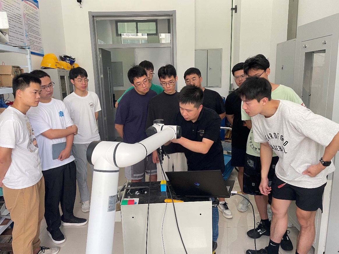 遨博技术中心培训主管阳锡鹏以《机器人编程及应用》为主题,为参会学生讲授“焊林”大讲堂第三期讲座。讲座中,阳锡鹏主管首先为大家讲述了机器人编程的原理及方法,随后演示了协作机器人通过相机采集部件图像特征并抓取相应部件,最后发散思维提出机器人编程在焊接中的应用思路。在提问环节,阳锡鹏主管对四位同学的提问进行了耐心地解答,并结合自身经验提出了相应的思路和建议:在科研学习中,不要固化思维,要发挥想象力,勇于尝试、创新,希望同学们可以结合实际不断地提出问题、解决问题。