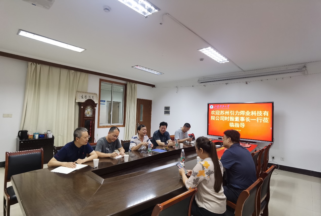 2023年8月22日,苏州引力焊业科技有限公司董事长时振来我院进行产学研交流活动,新材料及先进焊接技术研究院芦笙院长,海洋装备研究院首席专家姚震球教授、材料学院陈书锦副院长等参加交流。