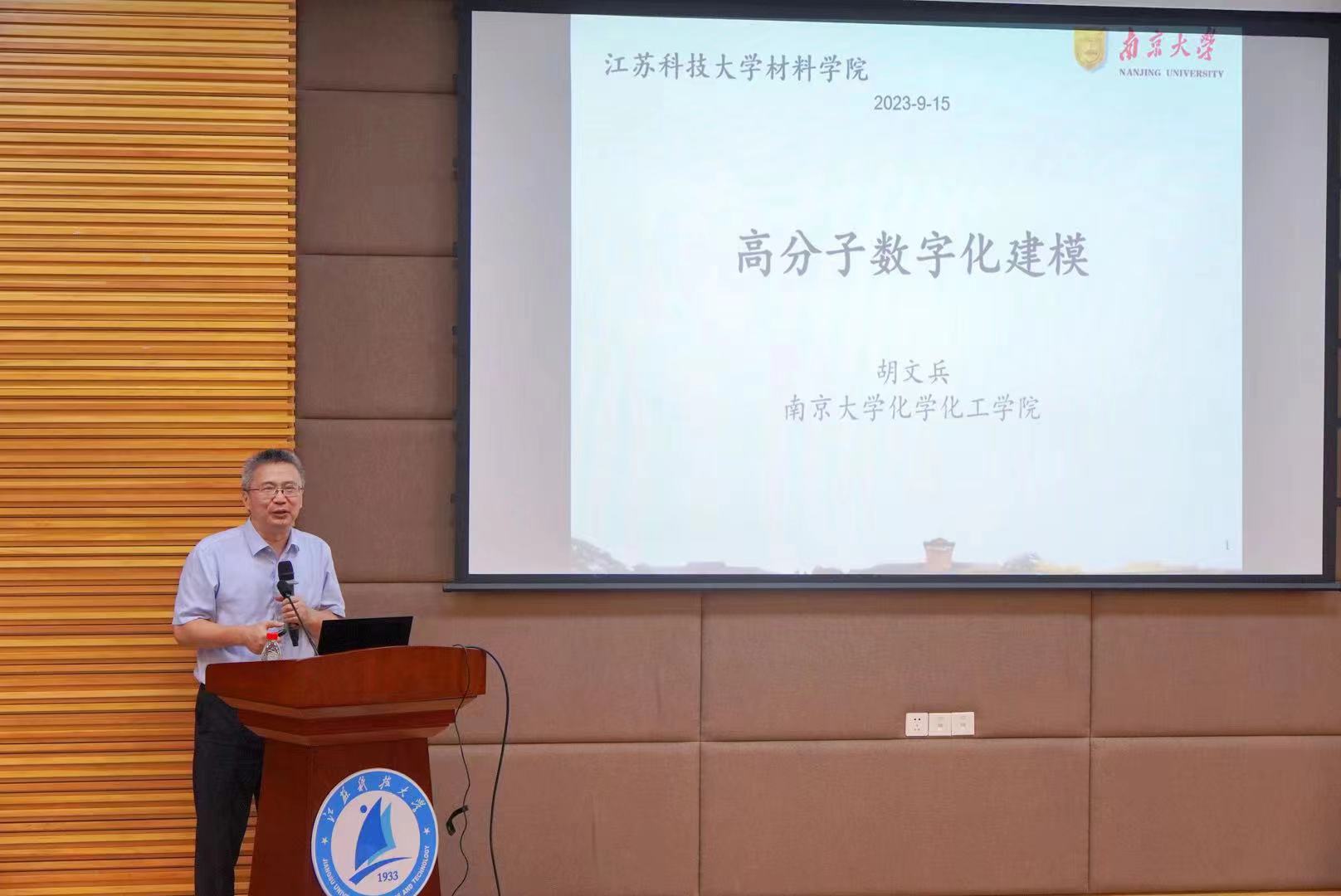 9月15日,应材料科学与工程学院邀请,南京大学化学化工学院胡文兵教授在图书馆B101报告厅作了主题为“高分子数字化建模”的学术报告。报告会由材料学院副院长胥国祥主持,现场100余名师生聆听了报告。