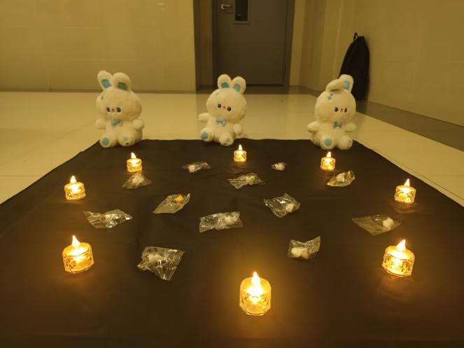 活动包括填祝福、送吉祥和圈中快乐三个环节。参加祝福活动的同学们在领取义工站提供的书签后,将自己的祝福写在了书签上。无论是节日祝福、国庆祝福、校庆祝福还是个人生活中的祝福,都是同学们对于美好未来的期待和憧憬。每一份祝福书签都在大厅里得到了展示,在小夜灯的照亮下,在盆栽树的装饰下,每份祝福都熠熠生辉。