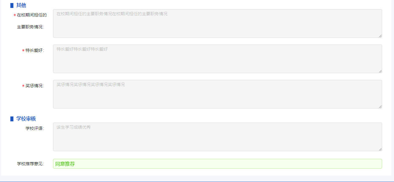 审核通过后,可以查看学校评语和学校推荐意见,所有信息均不允许修改。