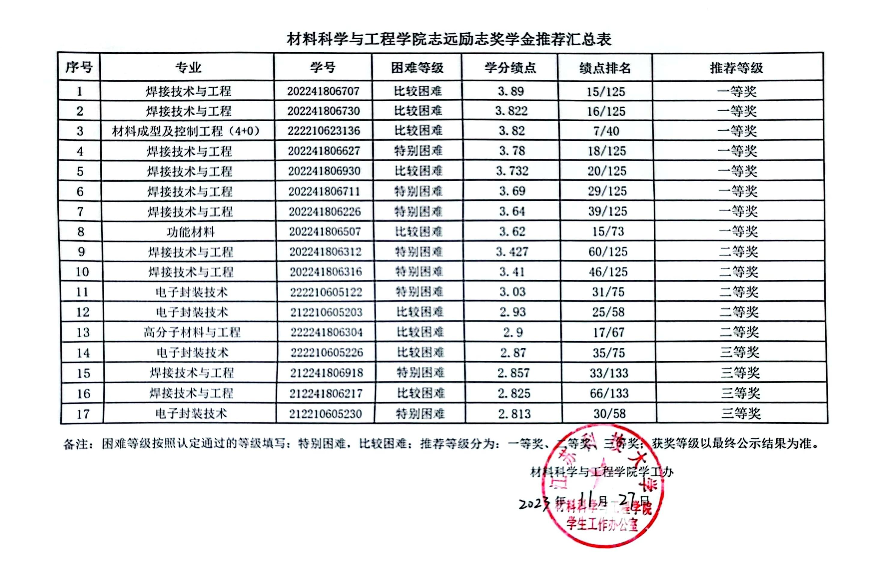 经班级提名、学院评定,现将2022-2023学年志远励志奖学金学院预评定结果予以公示(名单见附件),公示时间为2023年11月27日至2023年12月1日。评定结果以学校最终评审结果为准。