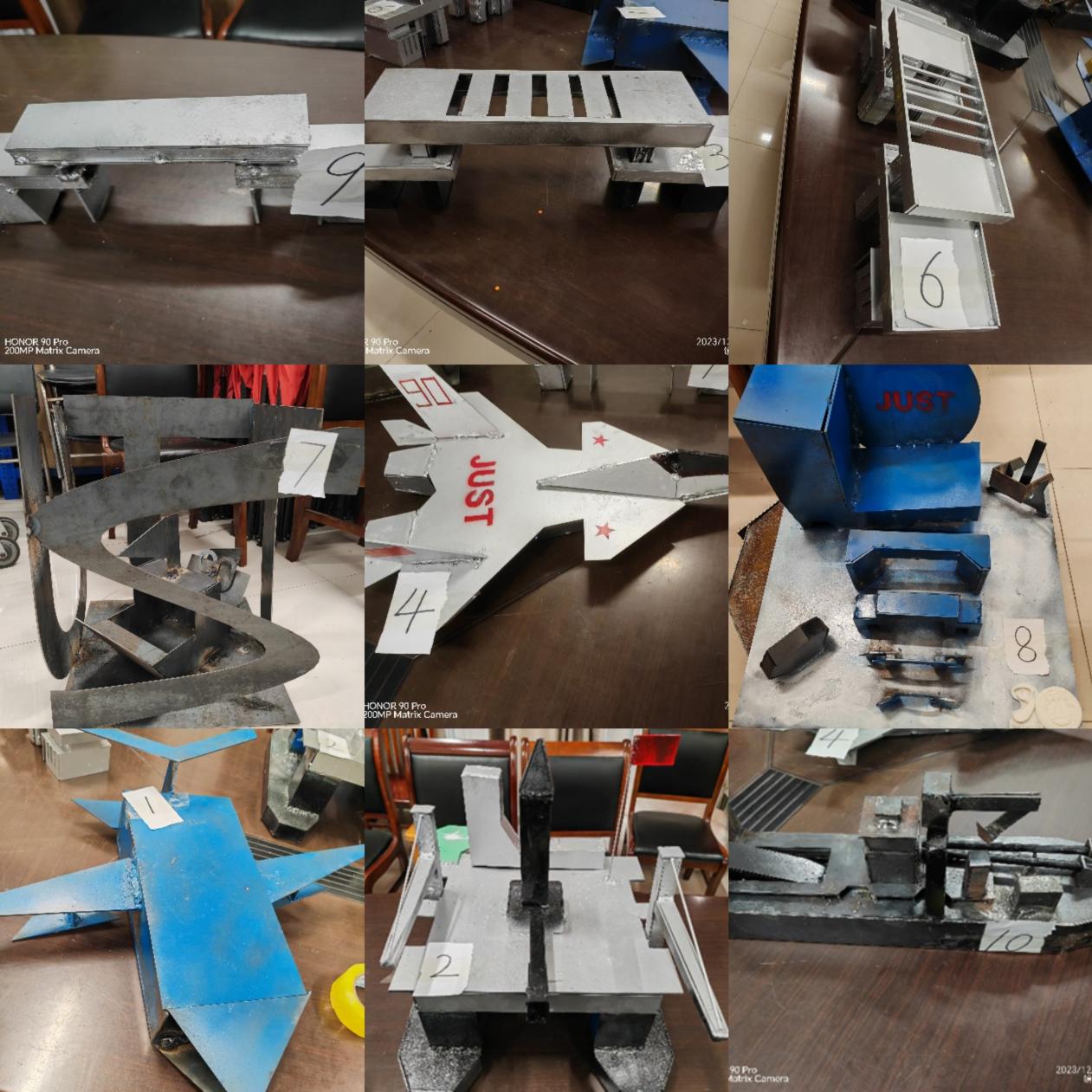 大赛历时一个多月,经过前期的激烈角逐,有12支参赛队伍进入了决赛。各个小组携带作品现场答辩,讲述作品的设计理念、基本构造以及焊接过程,评委们根据结构合理性、创新创意、焊接质量等多方面因素进行打分和点评,最终评选出一等奖1组、二等奖3组、三等奖5组及优胜奖3组。