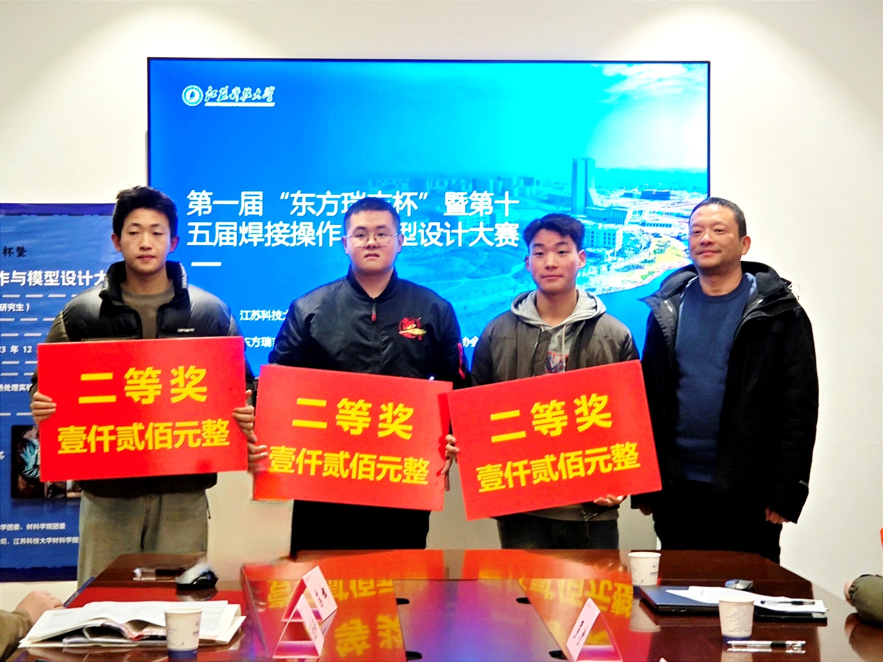 12月26日下午, 第一届“东方瑞吉”杯暨第十五届焊接操作与模型设计大赛圆满落幕。比赛由 团委、材料科学与工程学院团委主办,焊接协会承办。东方瑞吉能源装备有限公司人力资源部部长杨昌宏、人事经理陈荣、江苏工匠罗沙、13届优秀校友杨依海出席活动,并担任决赛评委。材料学院党委副书记杨海涛、焊接系主任王俭辛、副主任李涛涛、焊接实验室主任朱杰、焊接指导教师王彪和苏娜参加活动。